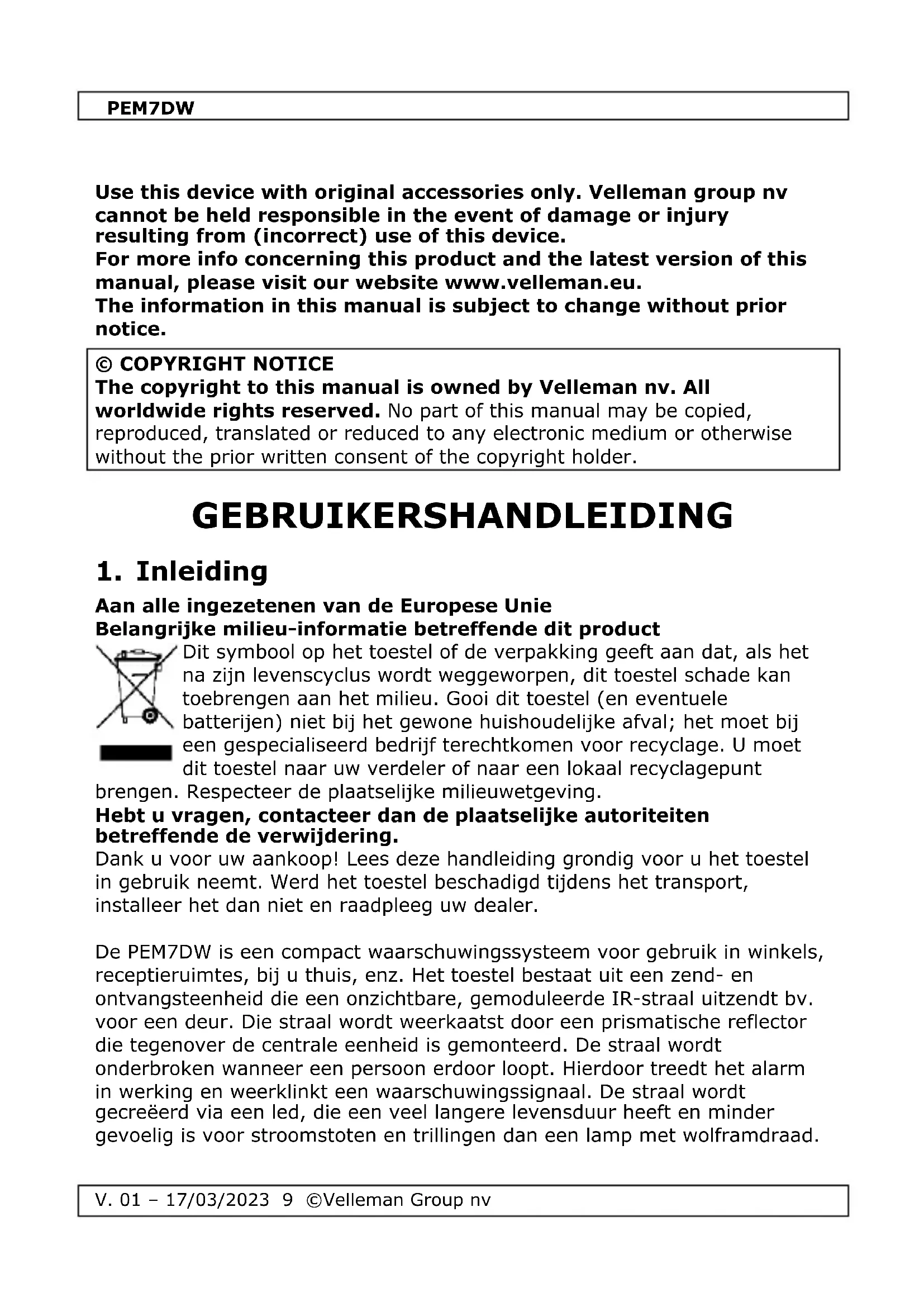V. 01 – 17/03/2023 10 ©Velleman Group nv