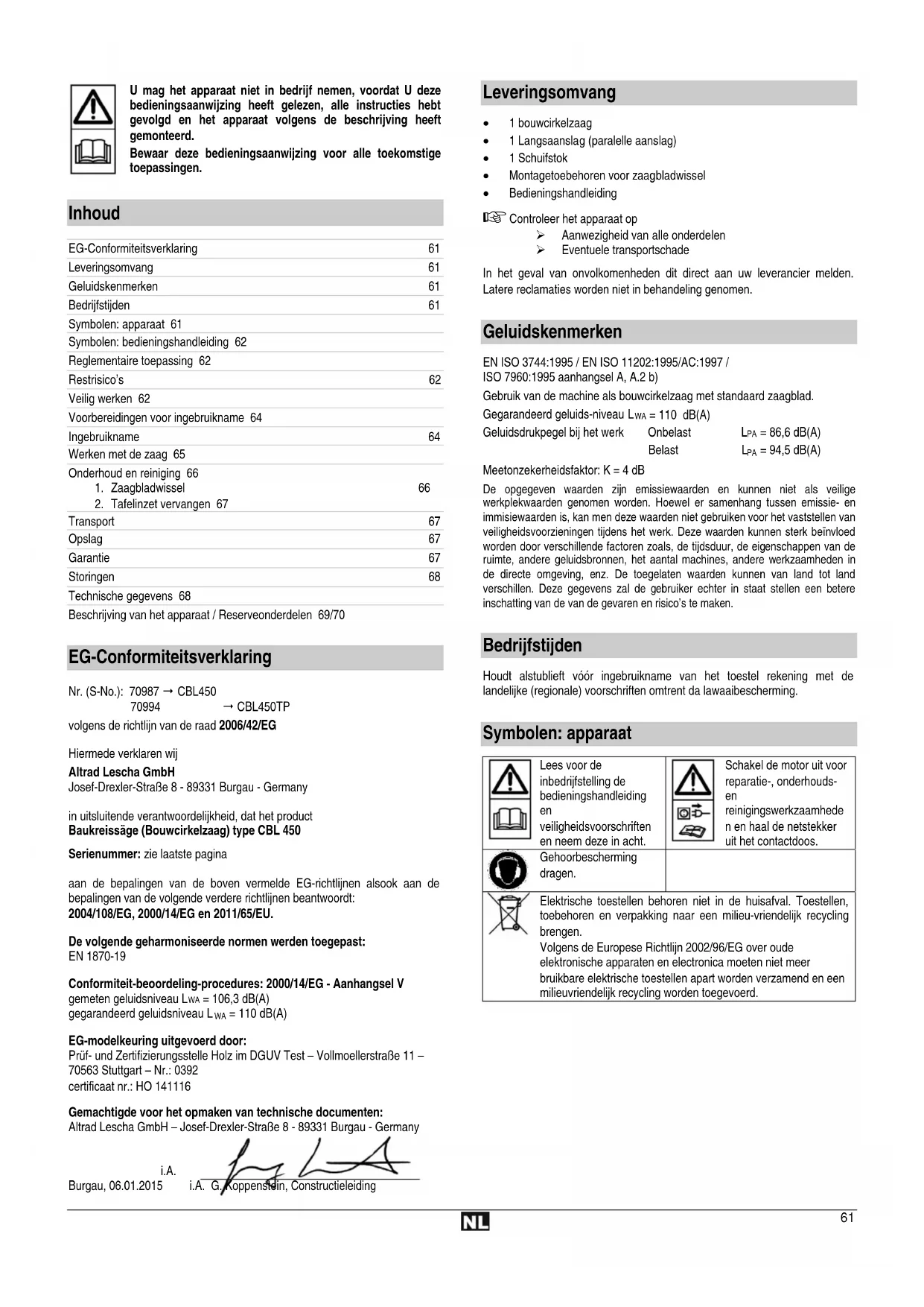 CBL 450 - Zaag Lescha - Gratis gebruiksaanwijzing en handleiding