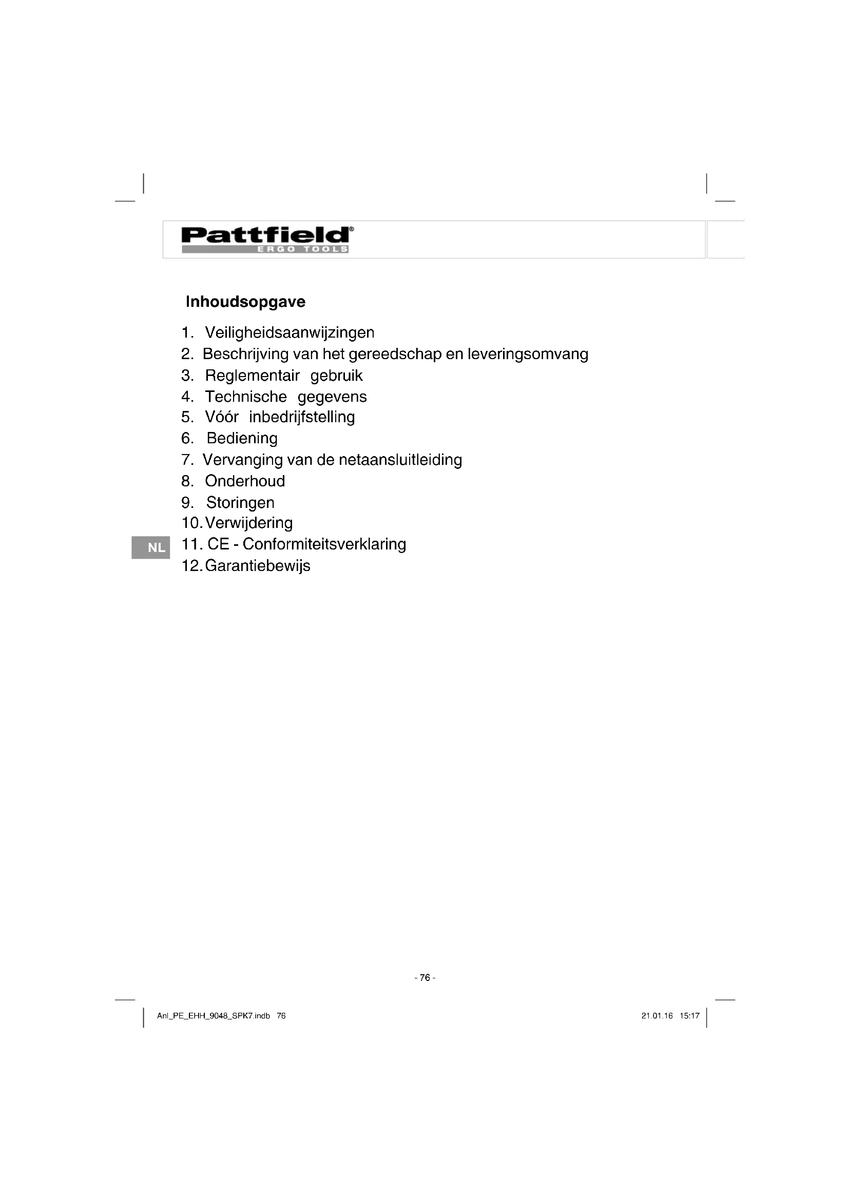 GEBRUIKSAANWIJZING PEEHH 9048 Pattfield