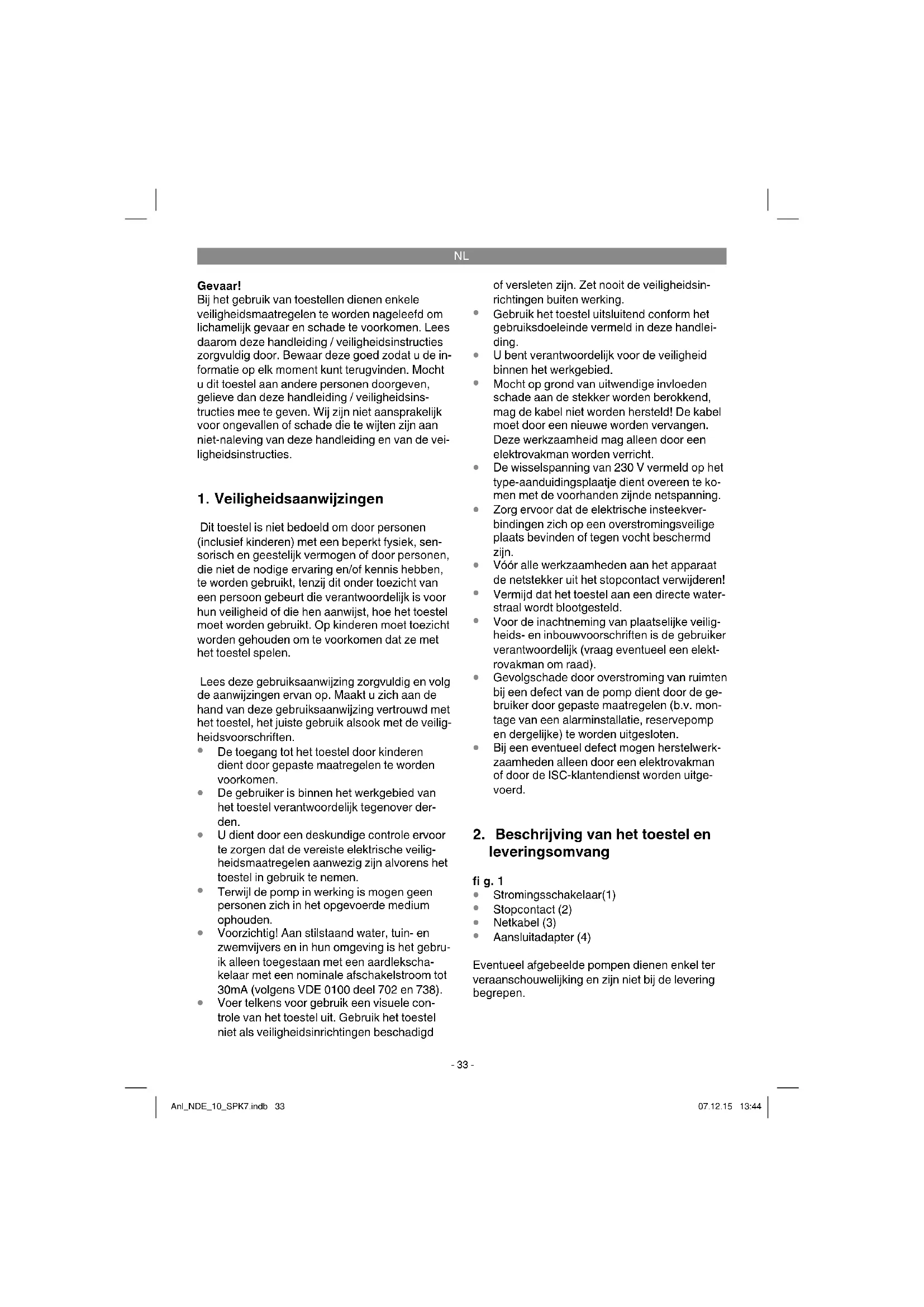 Aansluitadapter (4) Eventueel afgebeelde pompen dienen enkel ter veraanschouwelijking en zijn niet bij de levering begrepen. Anl_NDE_10_SPK7.indb 33Anl_NDE_10_SPK7.indb 33 07.12.15 13:4407.12.15 13:44NL