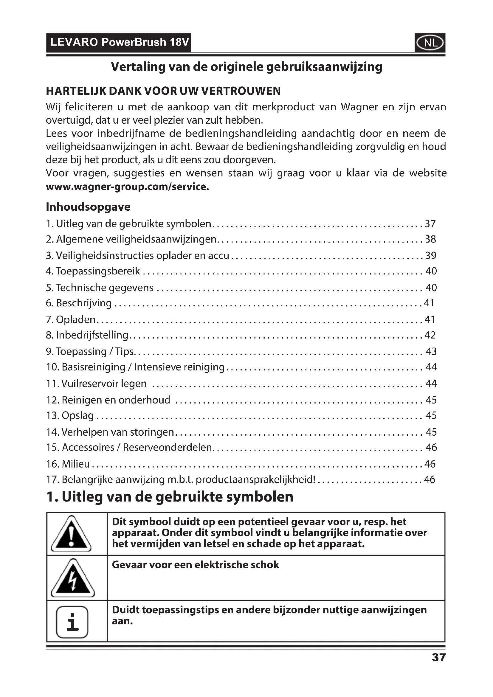 Levaro Powerbrush 18V - Stofzuiger WAGNER - Gratis gebruiksaanwijzing en handleiding