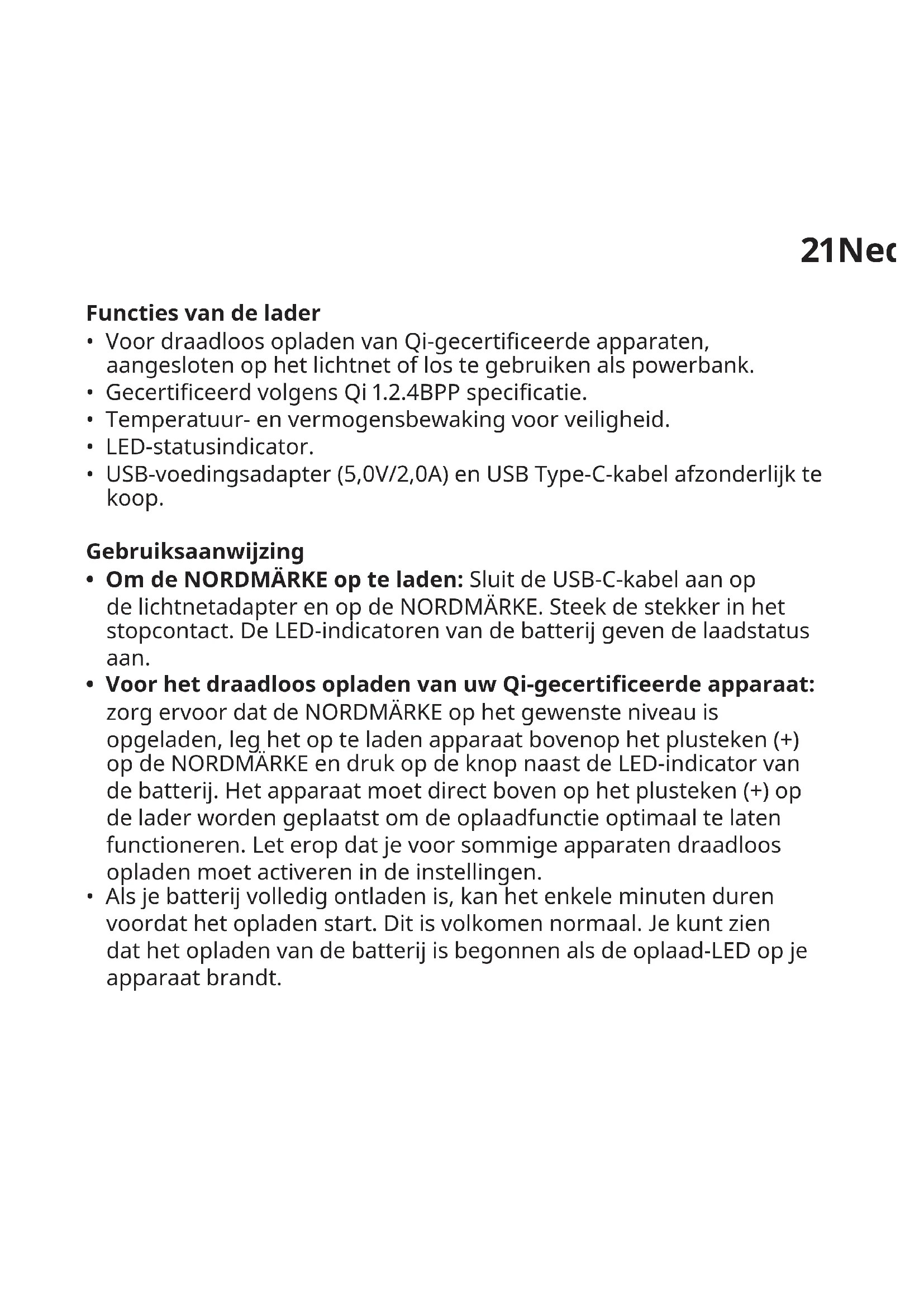 - Voor draadloos opladen van Qi-gecerticeerde apparaten, aangesloten op het lichtnet of los te gebruiken als powerbank.