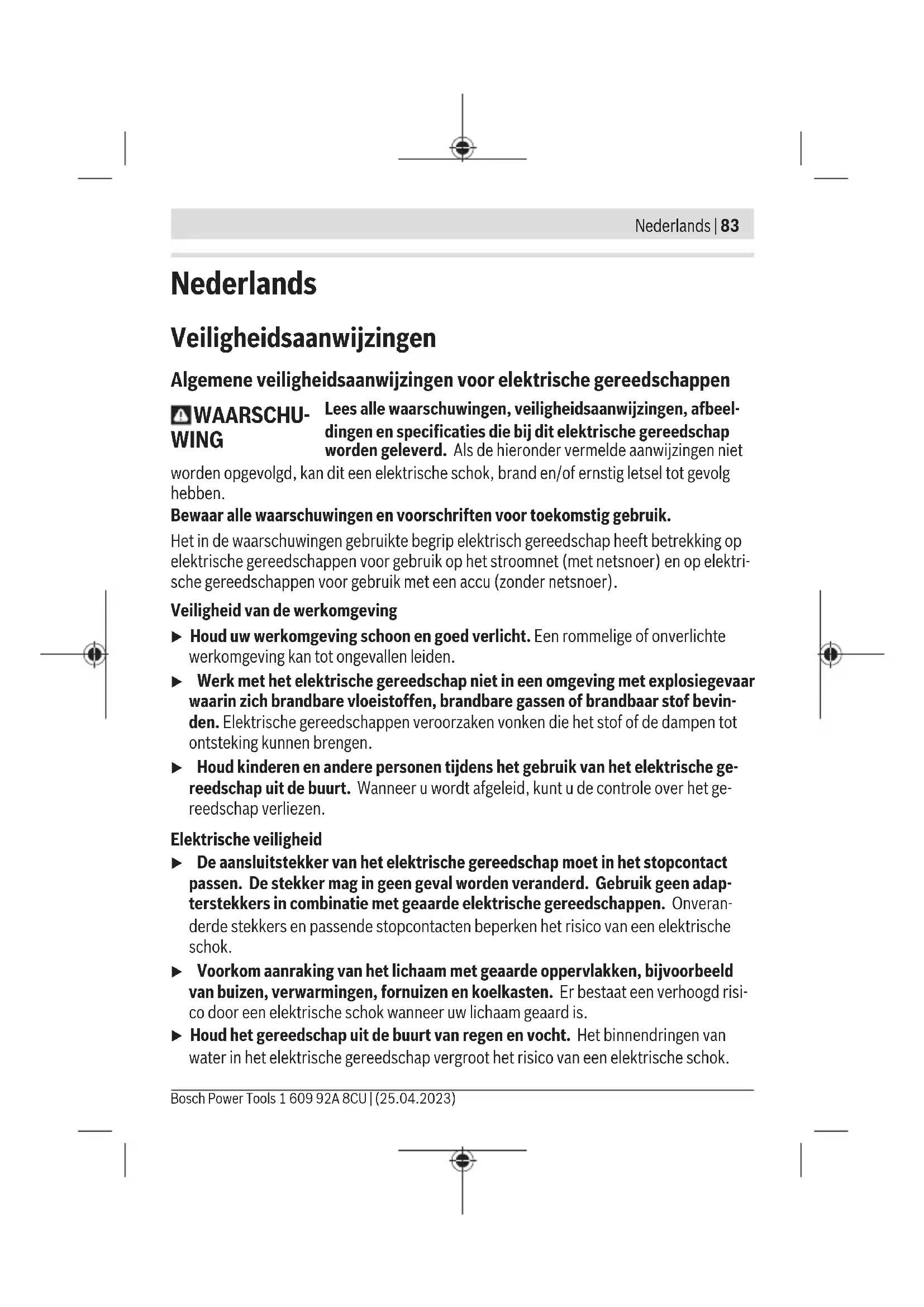 EU-conformiteitsverklaring Wij verklaren op eigen verantwoordelijkheid dat de genoemde producten voldoen aan alle desbetreffen- de bepalingen van de hierna genoemde richtlijnen en verordeningen en overeenstemmen met de volgende normen. Technisch dossier bij: * Accuborstel Productnum- mer Bosch Power Tools 1 609 92A 8CU | (25.04.2023)II