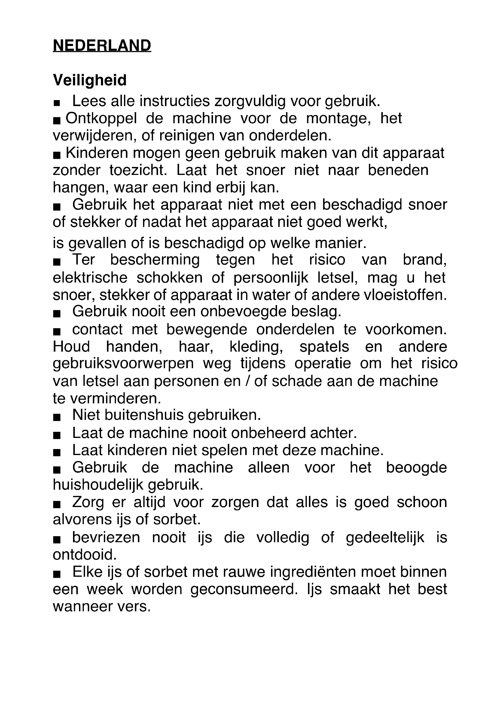 ■ Zorg er alkijd voor zorgen dat alles is goed schoon alvorens ijs of sorbet.