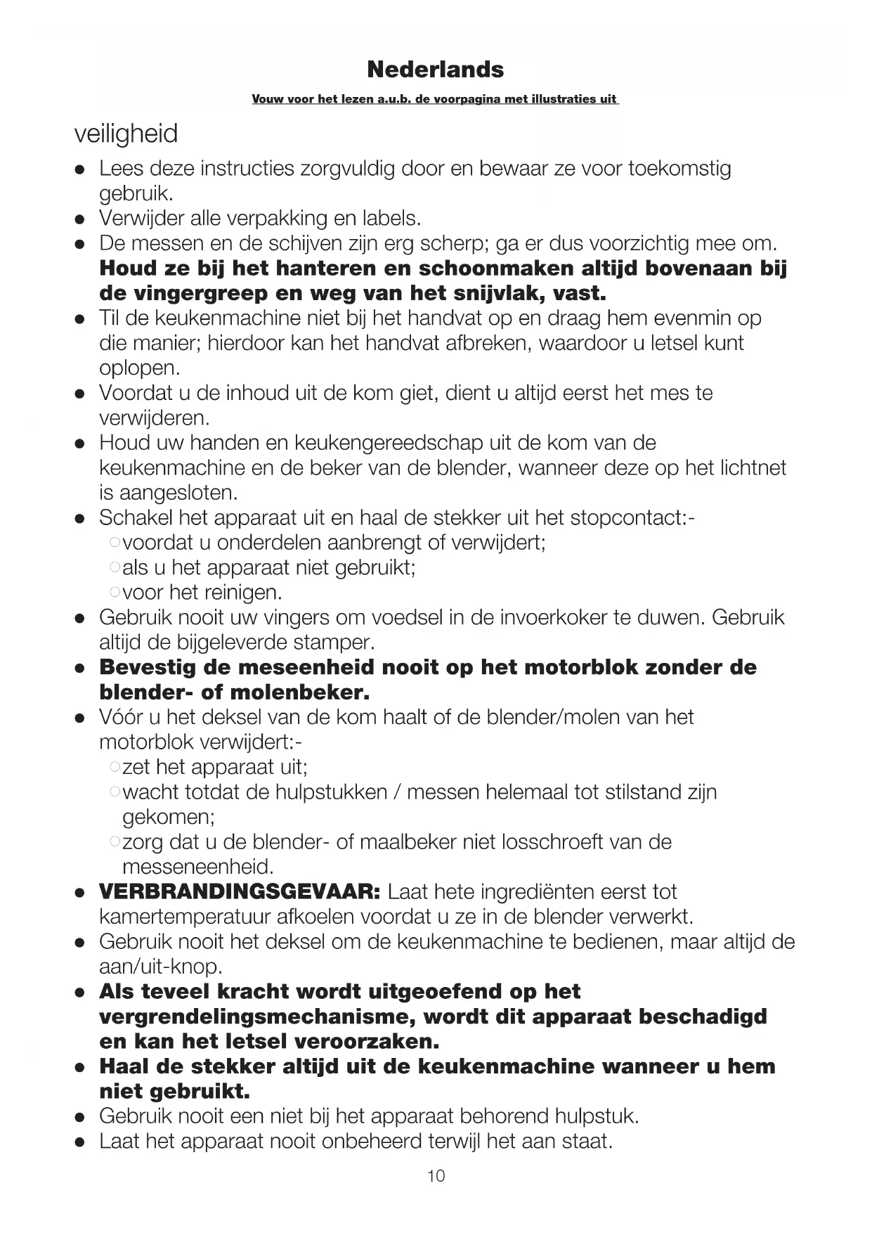 ouw voor het lezen a.u.b. de voorpagina met illustraties uitG Gebruik nooit een beschadigd apparaat. Laat het nakijken of repareren: zie Onderhoud en klantenservice.
