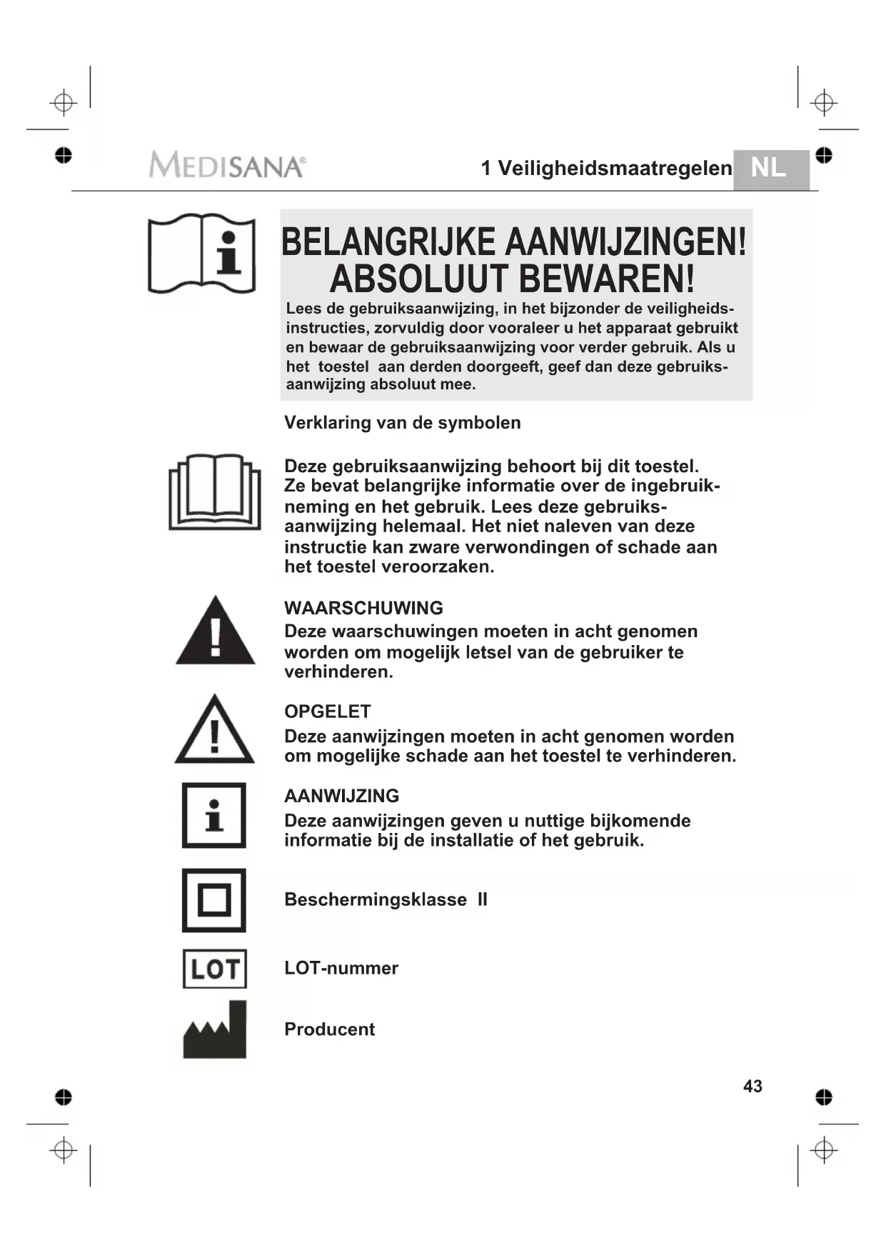 1 Veiligheidsmaatregelen / 2 Het gebruik MEDISANA