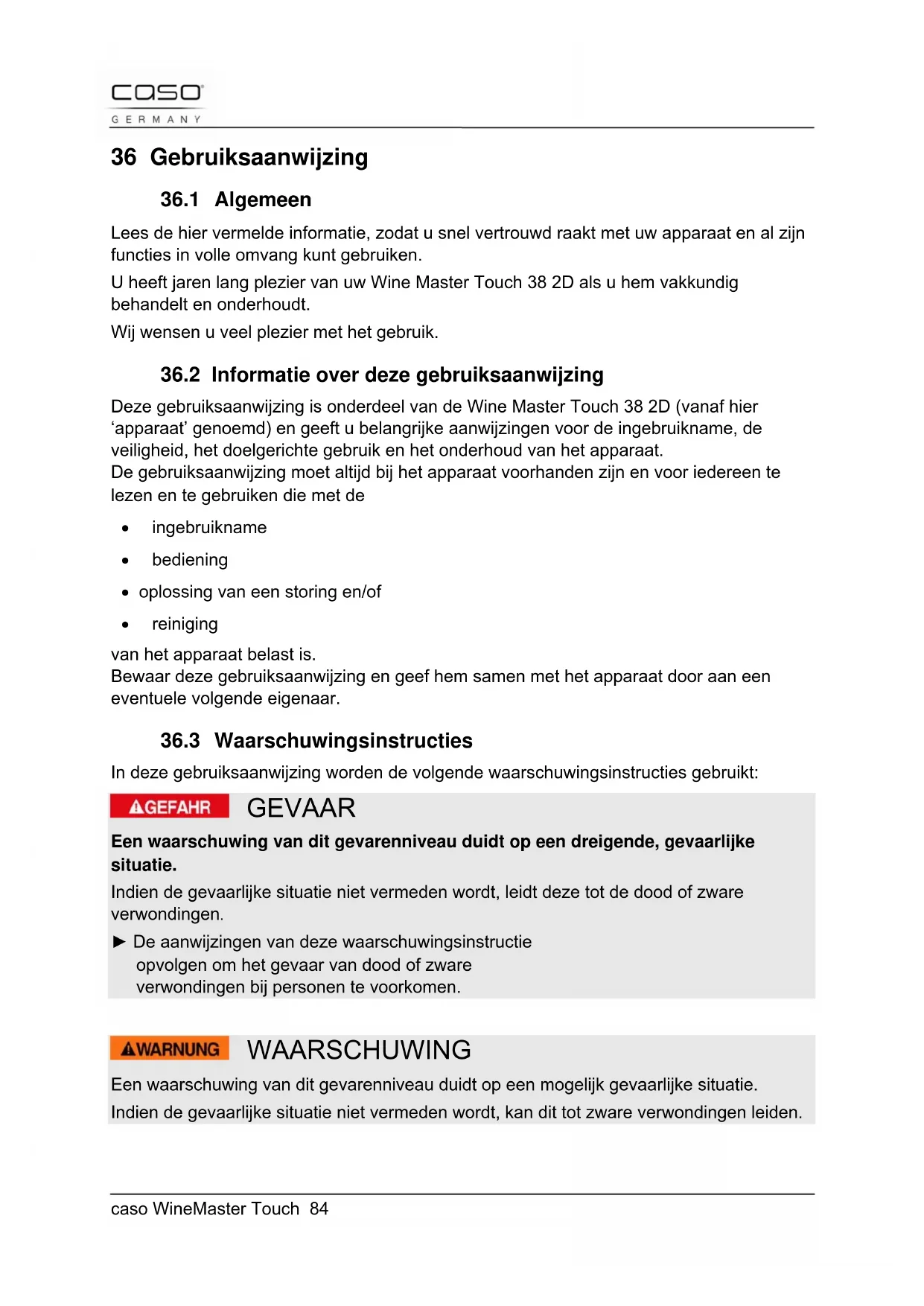 GEBRUIKSAANWIJZING WineMaster Touch 66 CASO
