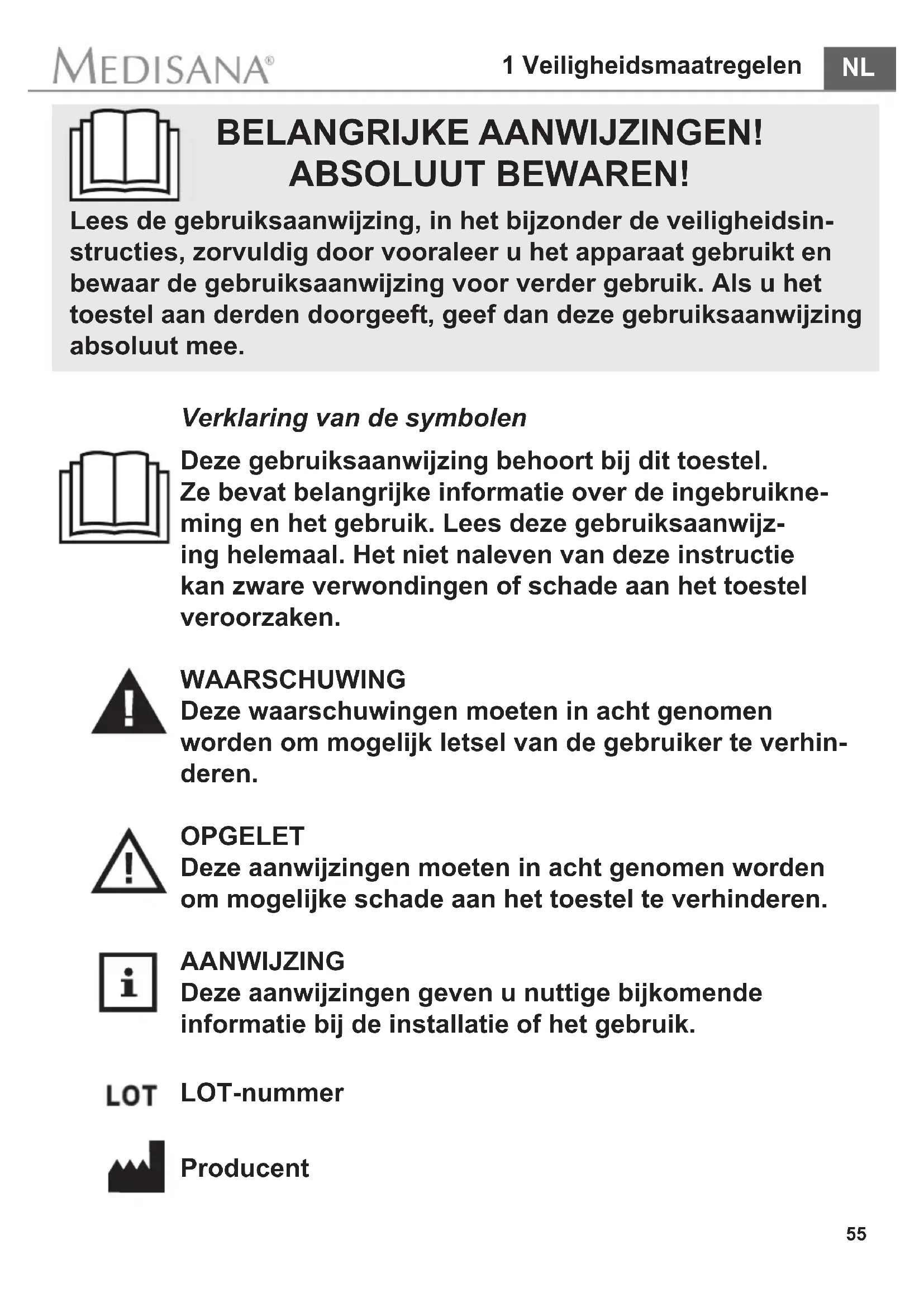 Lees de gebruiksaanwijzing, in het bijzonder de veiligheidsinstrumenties, zorvuldig door vooraleer u het apparaat gebruikt en bewaar de gebruiksaanwijzing voor verder gebruik. Als u het toestel aan derden doorgeeft, geef dan deze gebruiksaanwijzing absoluut mee.