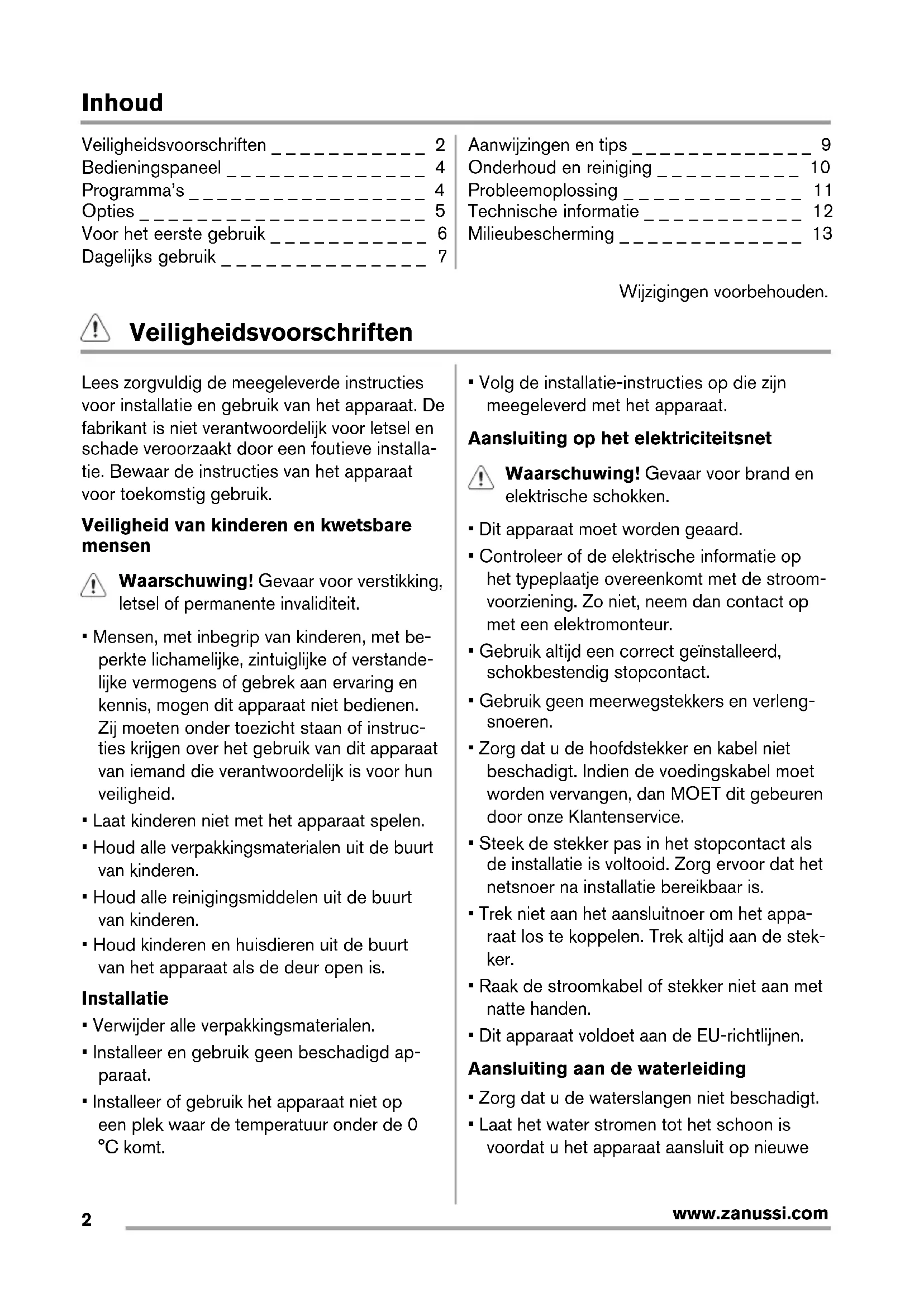 www.zanussi.comDeze optie is niet van toepassing op . Voor het eerste gebruik