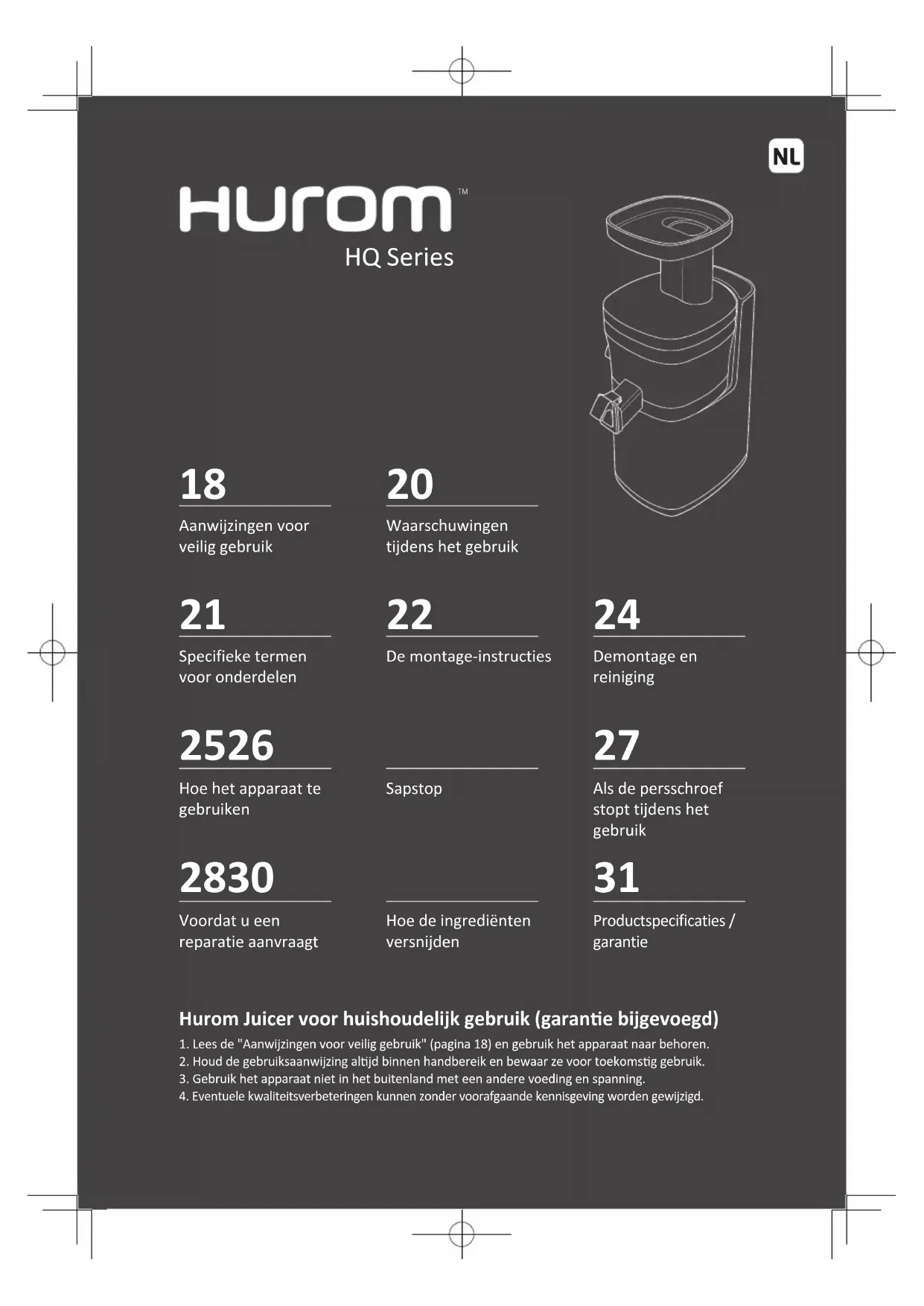 Hurom biedt een garantie van een (2) waar vanaf de datum van aankoop door de oorspronkelijke koper.