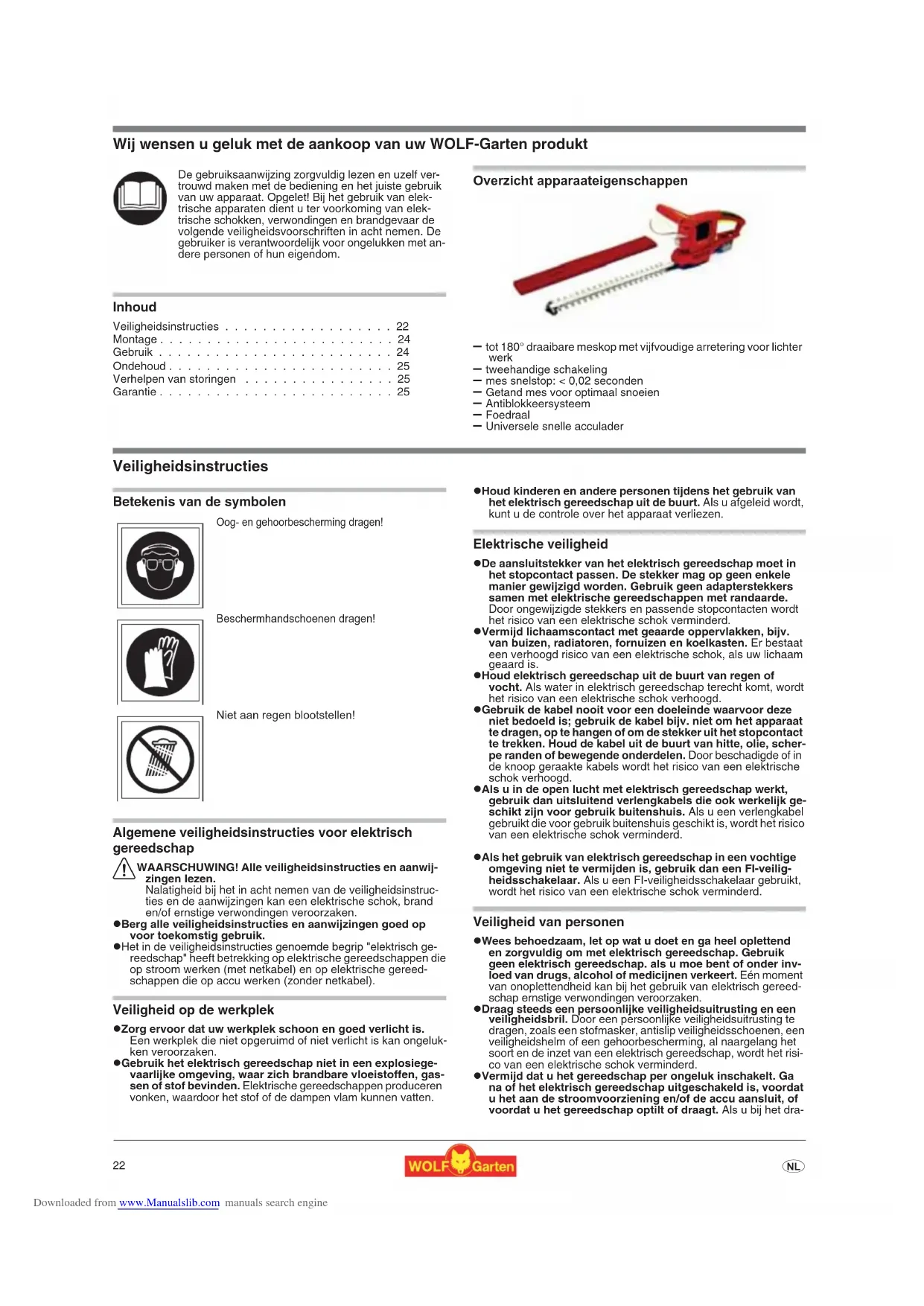 - Wij wensen u geluk met de aankoop van uw WOLF-Garten produkt Inhoud Veiligheidsinstructies p. 22