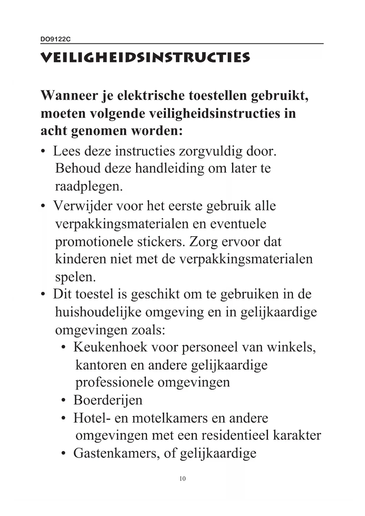 GEBRUIKSAANWIJZING DO9122C DOMO