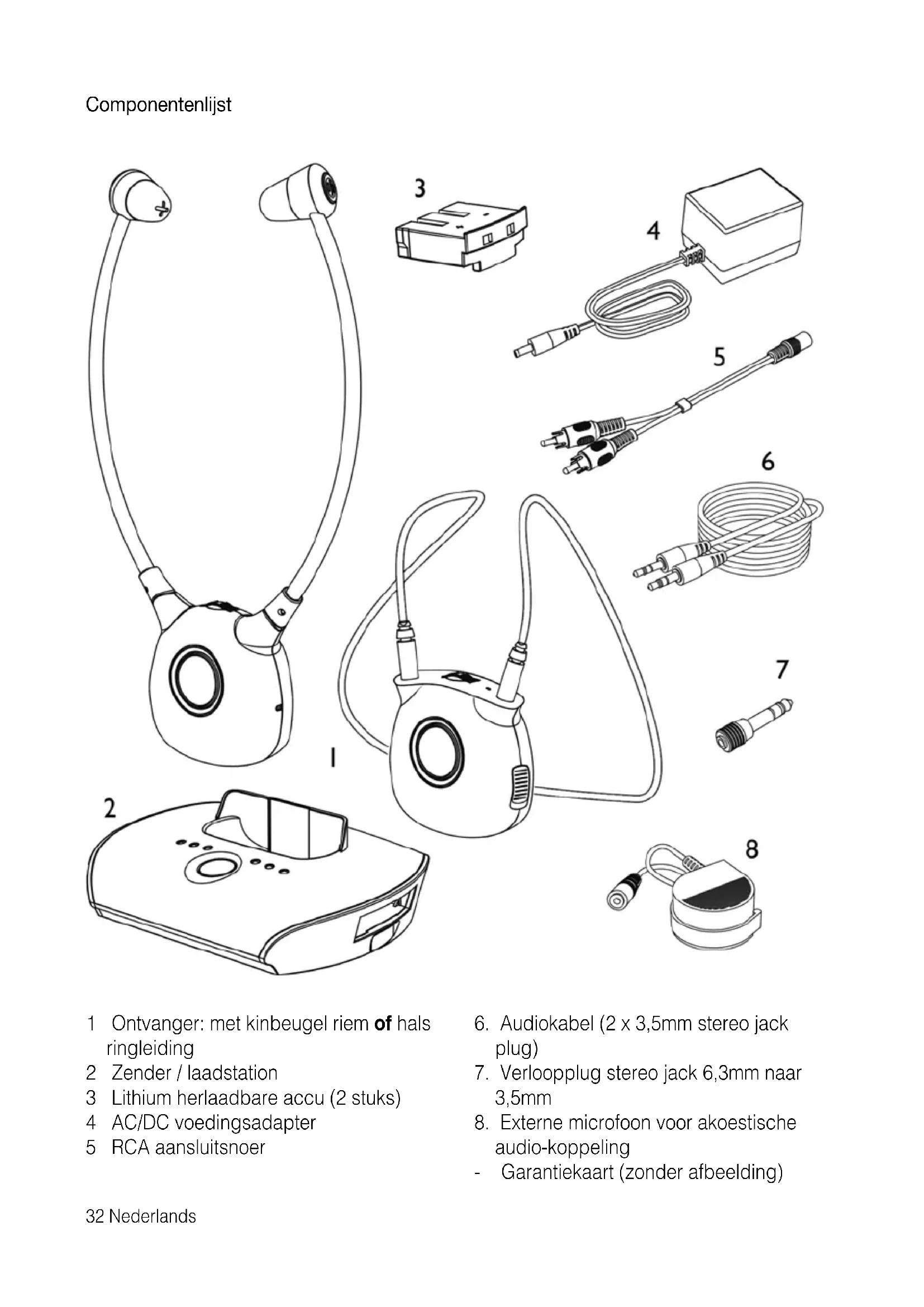 Deze 2.4 Digitale Hoofdtelefoon.Maakt gebruik van de的那一ste digitale draadloze technologie en maakt het maybeijk voor veel hoortoestelgebruikers,veelal ouderen, door de (hele) woning wee velop kuren genieten van een helder en duidelijk geluid van de TV of de Stereo-installatie.Verbind de zender eenvoudig aan de gewennen audiobron,zoals DVD spelere,CD spelere,TV,Stereo-installatie of iPod.Op eenvoudige snelle wijze kunt u in slechts enkele minuten wee velop genieten van uw muziek of TV programma's.