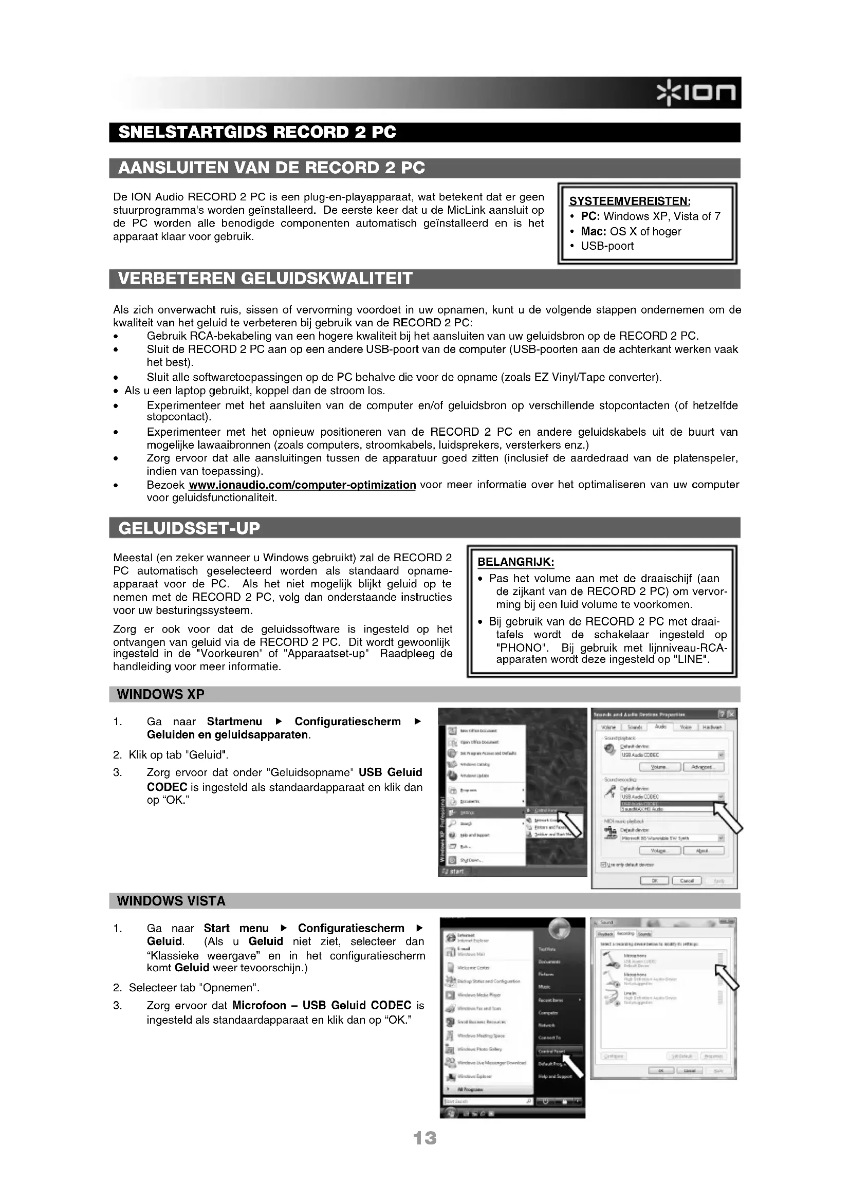 GEBRUIKSAANWIJZING Record 2 PC ION