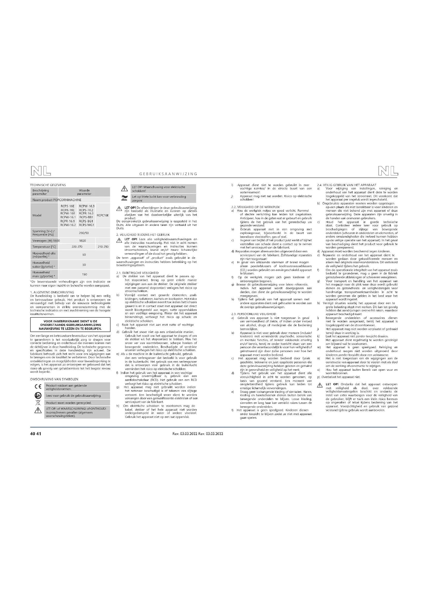 GEBRUIKSAANWIJZING RCPW16E Royal Catering