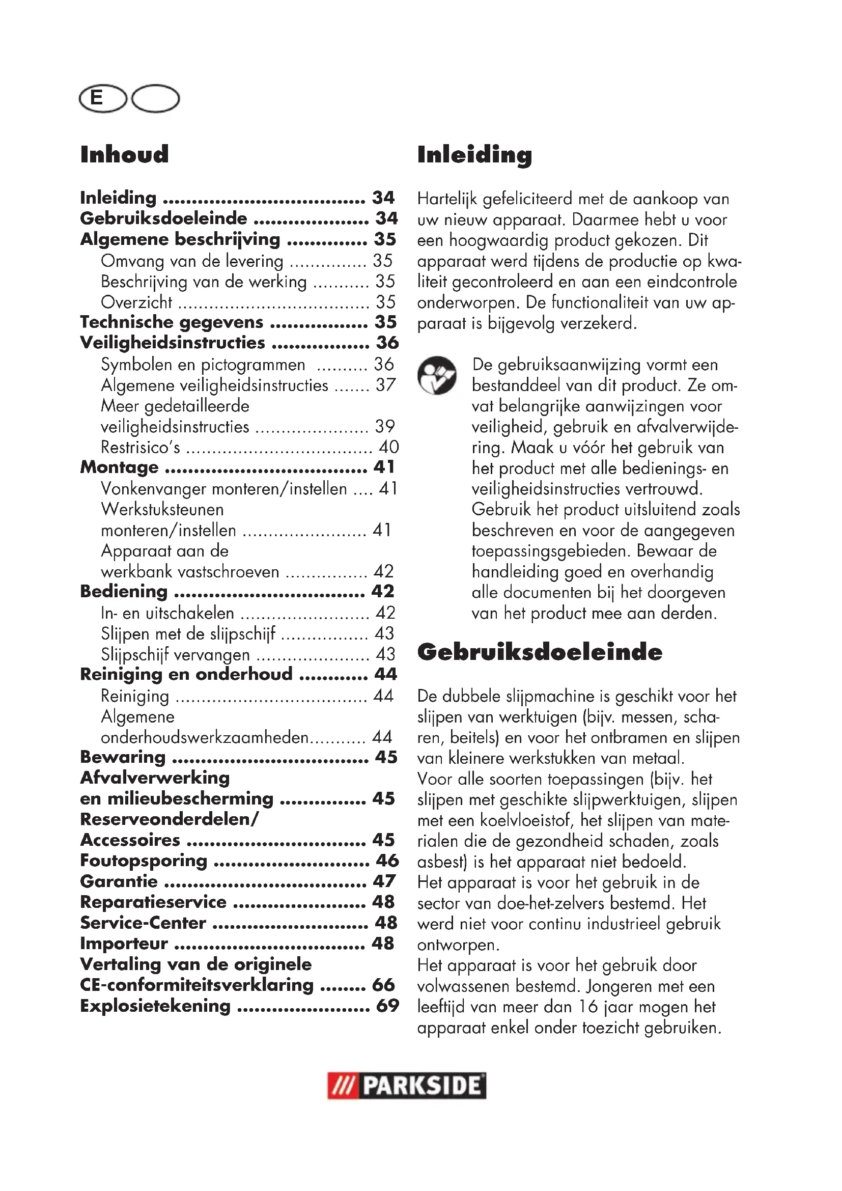 - Gebruiksdoeleinde p. 34
