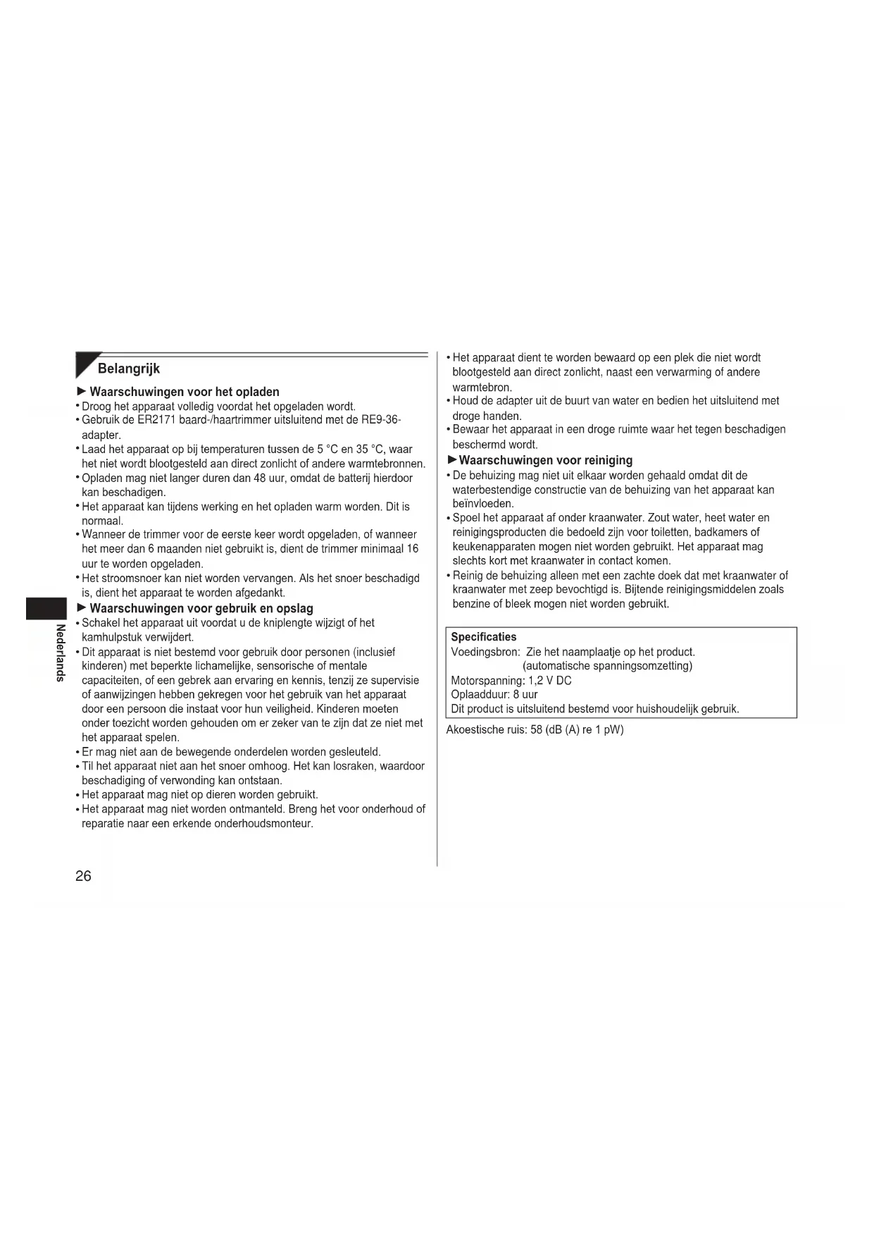 De batterij in deze trimmer is Niet bedoeld om door consumpter te worden verrangen. De batterij kan darüber worden verrangen bij een erkend onderhoudscentrum.
