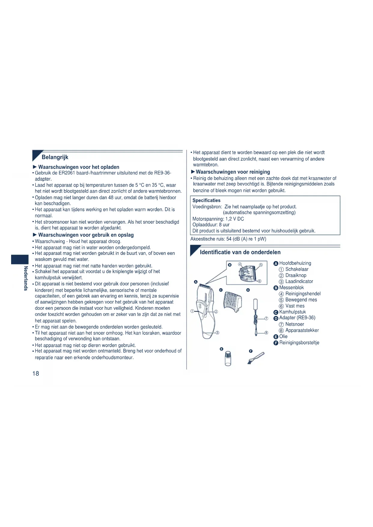 - Gebruik de ER2061 baard-/haartrimmer uitsluitend met de RE9-36-adapter.