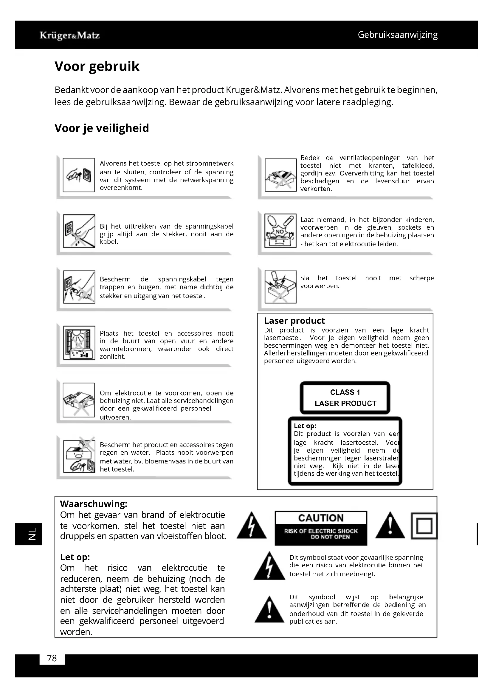 Bedankt voor de aankoop van het product Kruger&Matz. Alvorens met het gebruik te beginnen, lees de gebruiksaanwijzing. Bewaar de gebruiksaanwijzing voor latere raadpleging.