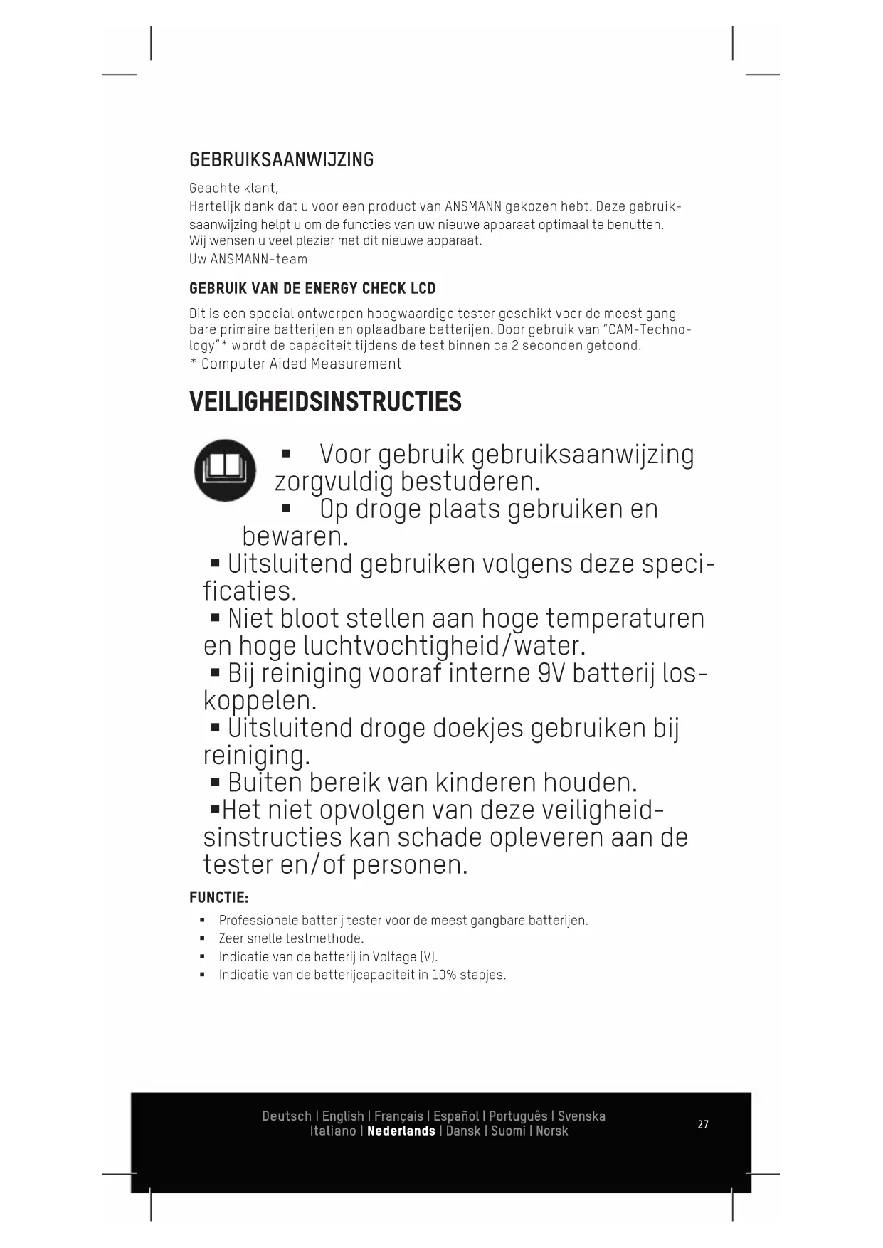 GEBRUIKSAANWIJZING Energy Check LCD ANSMANN