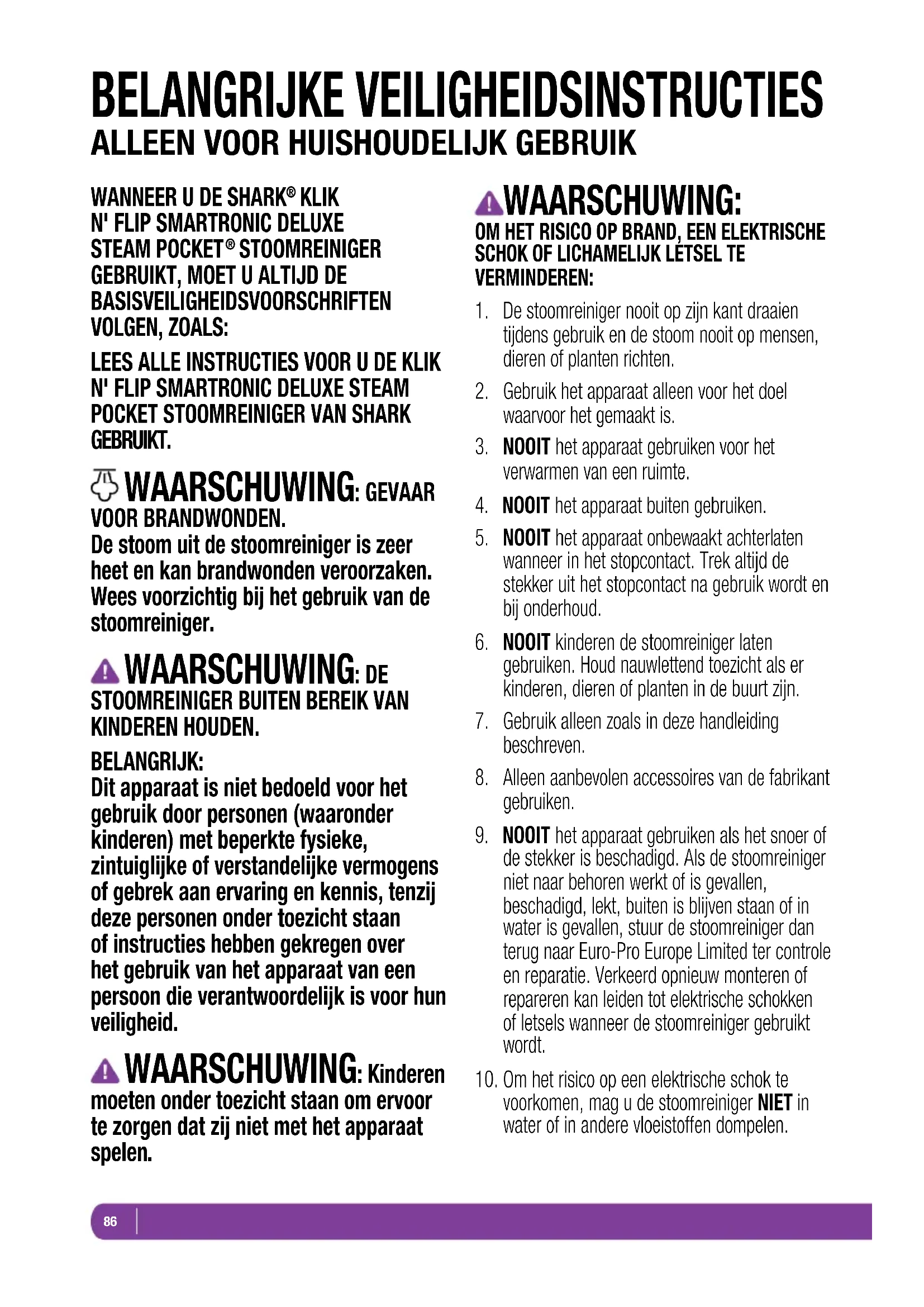 6. NOOIT kinderen de stoomreiniger laten