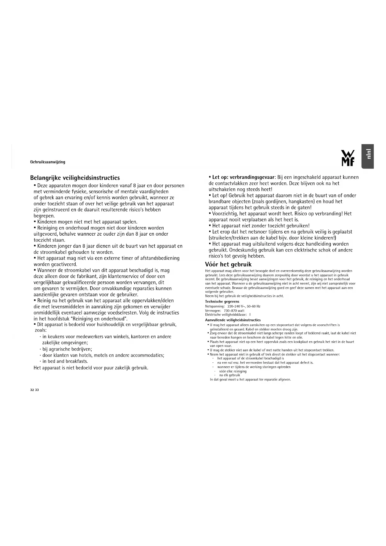 - Het apparaat mag alleen worden gebruikt met originele accessoires van WMF.