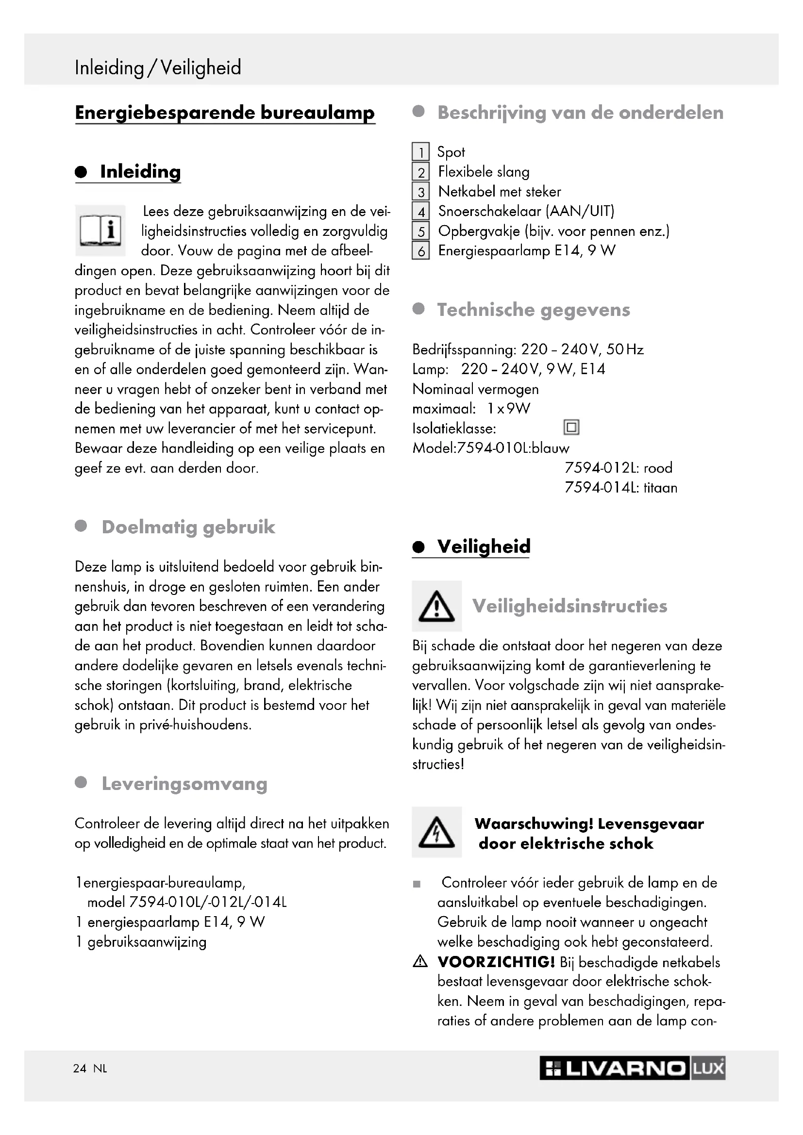 GEBRUIKSAANWIJZING 7594010L Livarno Lux