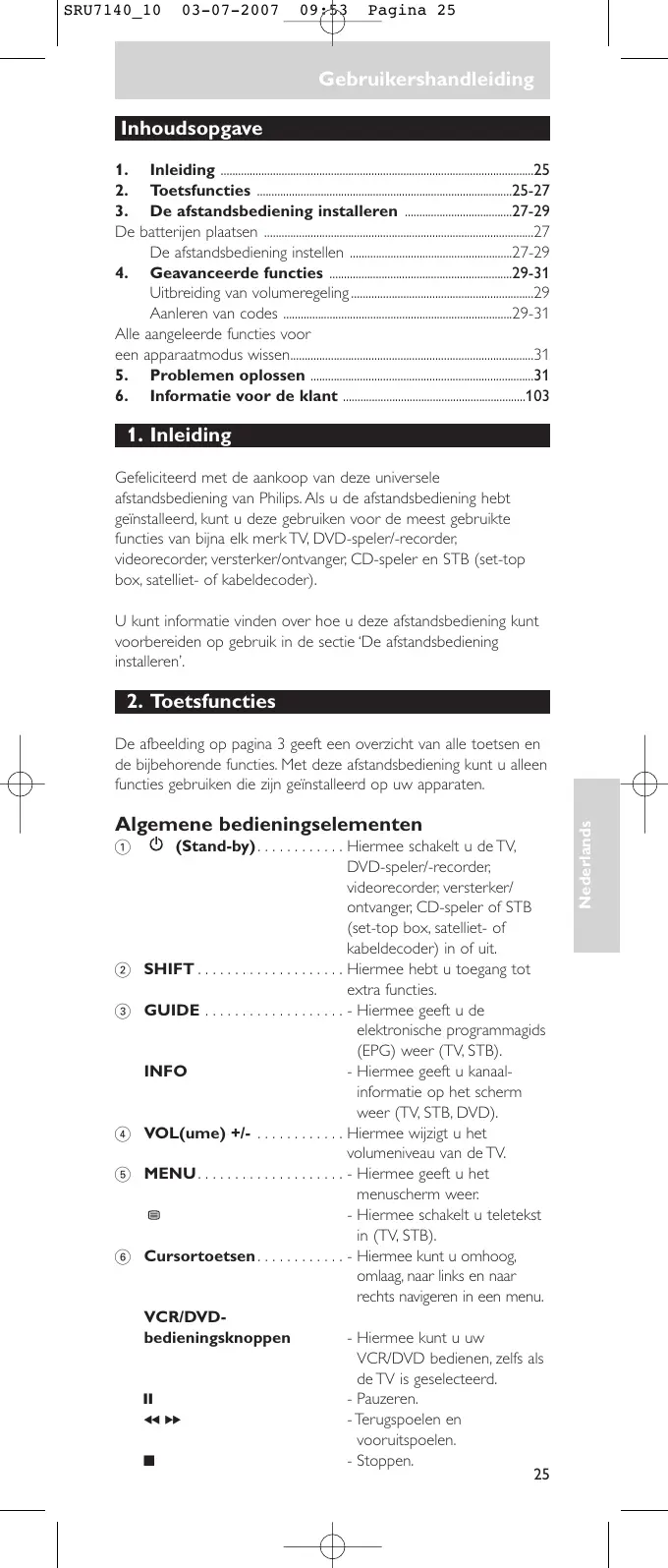 SRU7140_10 03-07-2007 09:53 Pagina 25 Gebruikershandleiding Inhoudsopgave