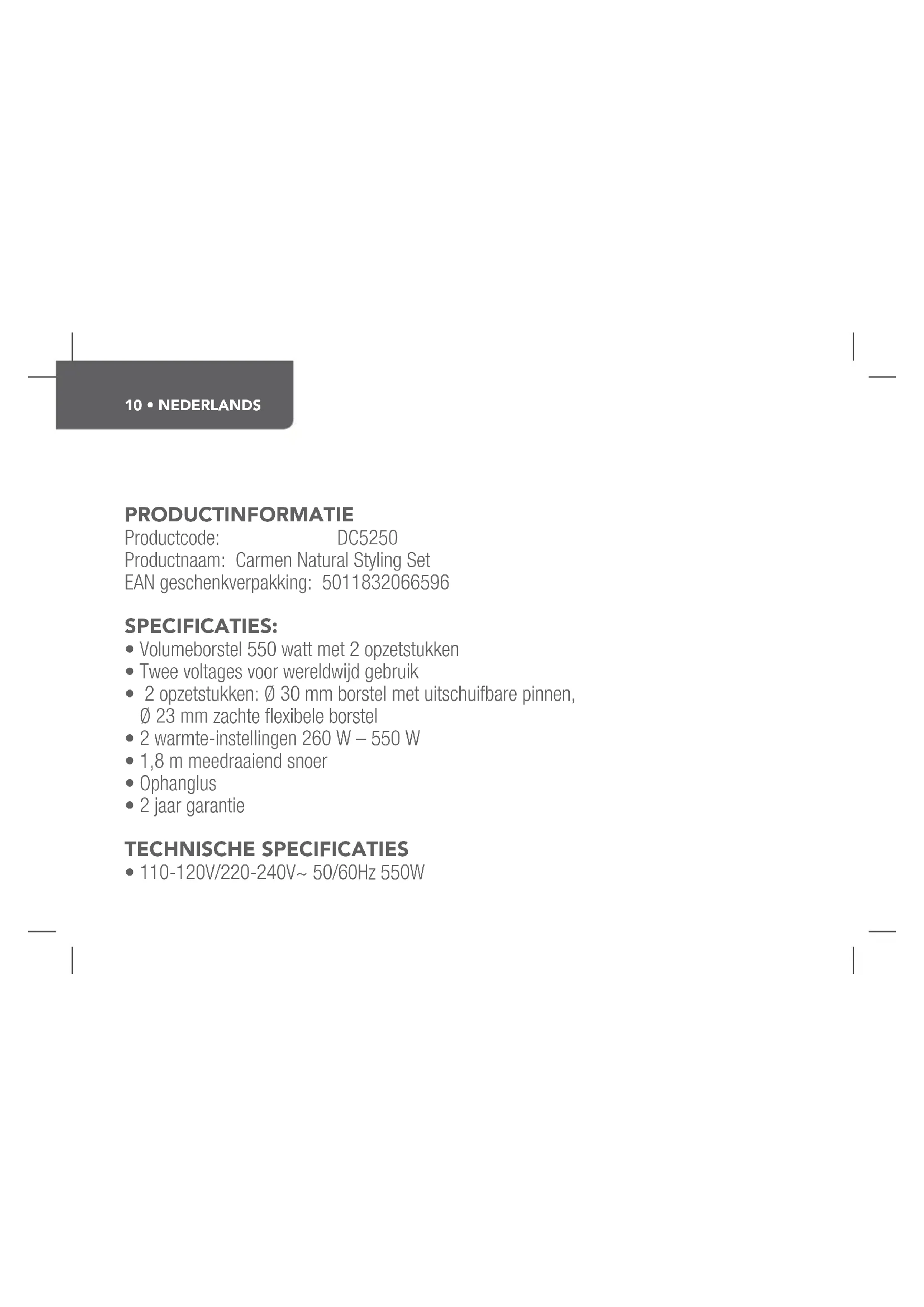 Vind de handleiding van het apparaat gratis Natural Styling Set DC5250 Carmen in PDF-formaat.