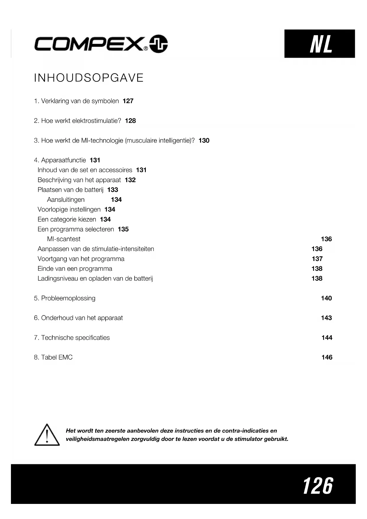 Het wordt ten zeerste aanbevolen deze instructies en de contra-indicaties en veiligheidsmaatregelen zorgvuldig door te lezen voordat u de stimulator gebruikt.127