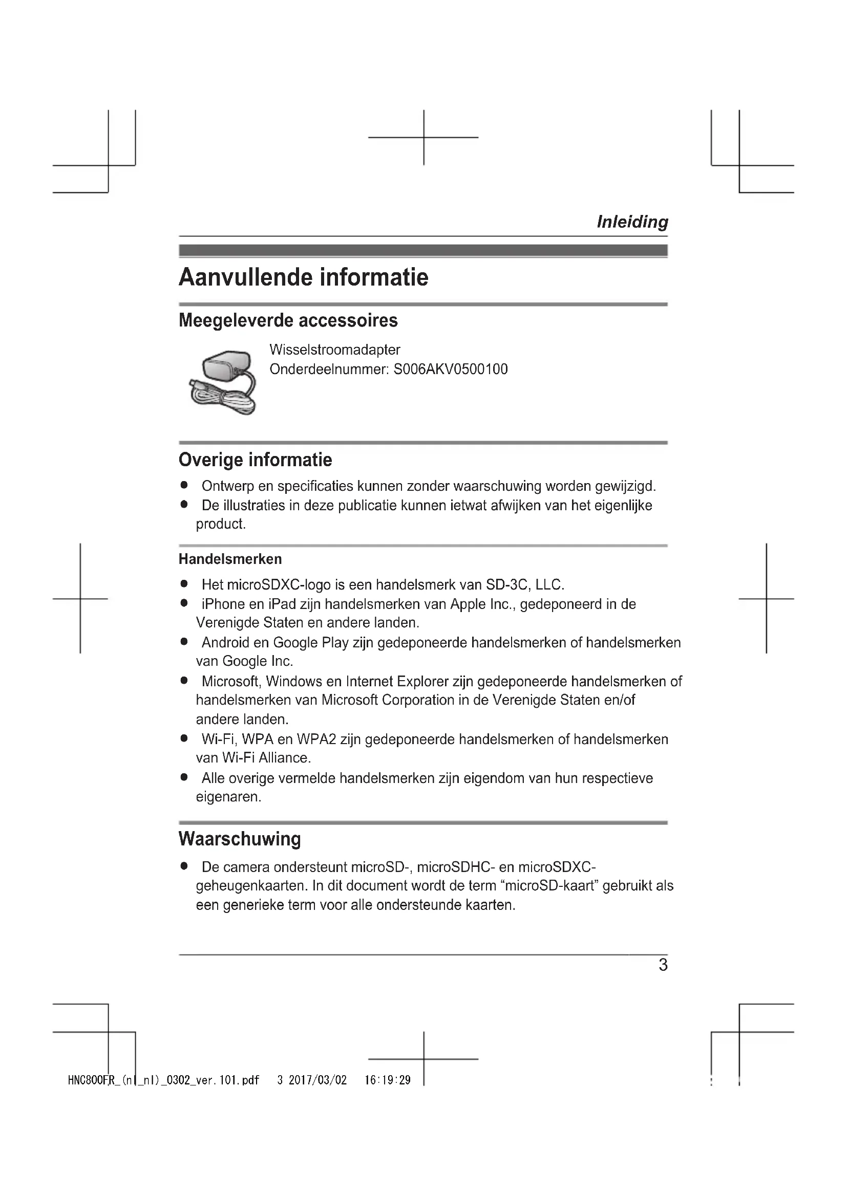 Dit document legt uit hoe u de camera kurz configureren en hoe u er toegang toe kurz krijgen met een mobiel apparaat. U要去 deze stappen volgen voordat u de camera kurz gebruiken. Raadpleeg de Gebruikershandleiding (pagina 33) voor meer informatie over het gebruik van de camera.