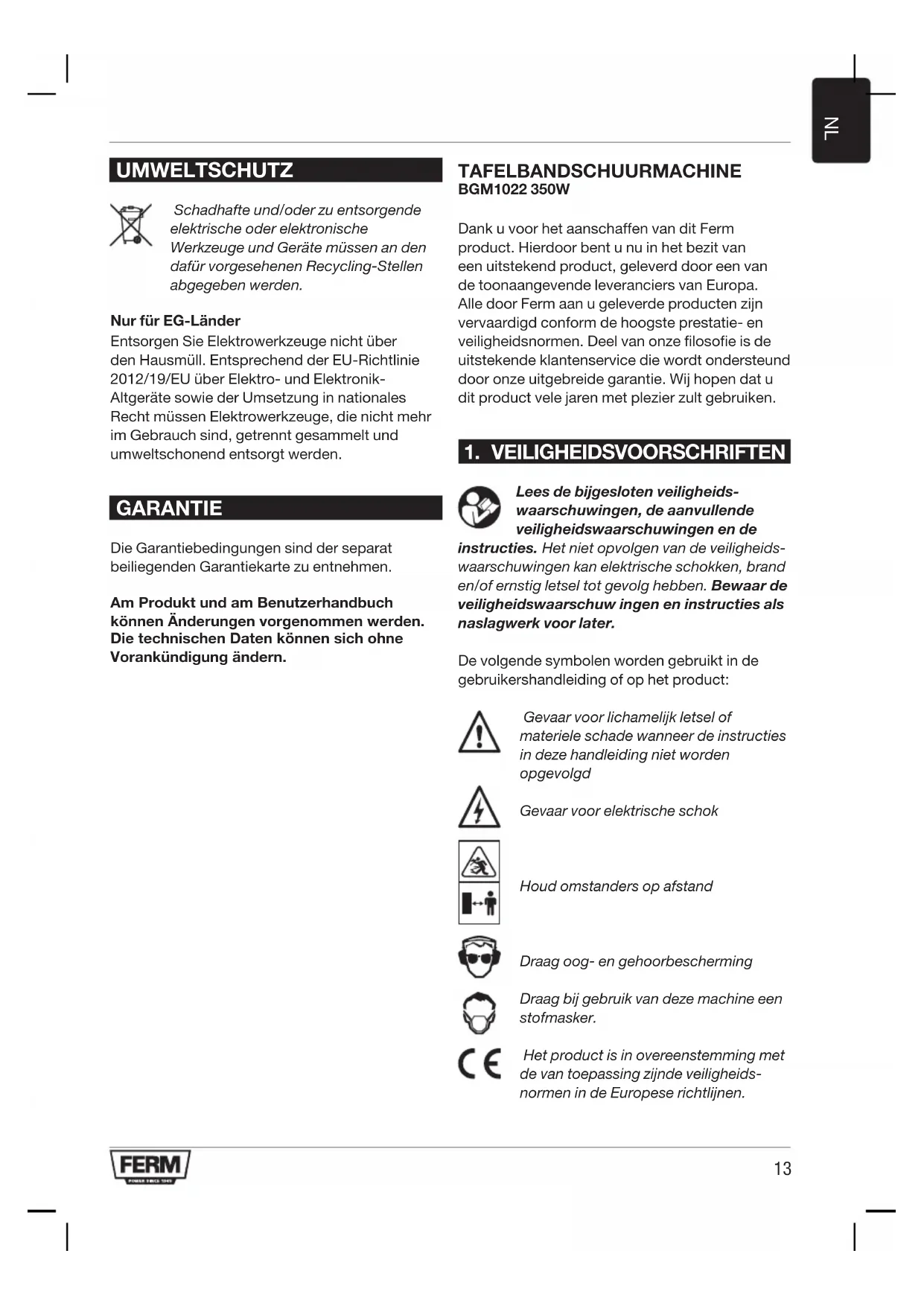 GEBRUIKSAANWIJZING BGM1022 Ferm