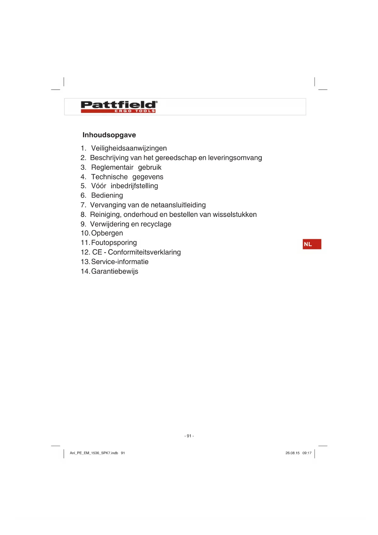 GEBRUIKSAANWIJZING PEEM 1536 Pattfield