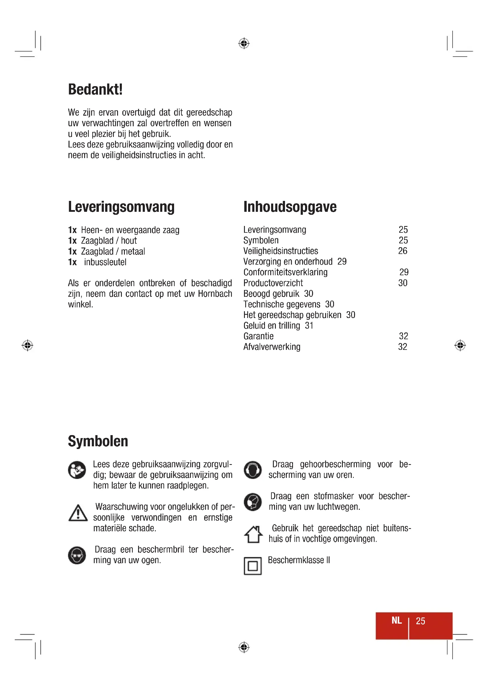 In geval van storingen met betrekking tot materiaal- of fabricagefouten neemt u contact op met uw Hornbach winkel: