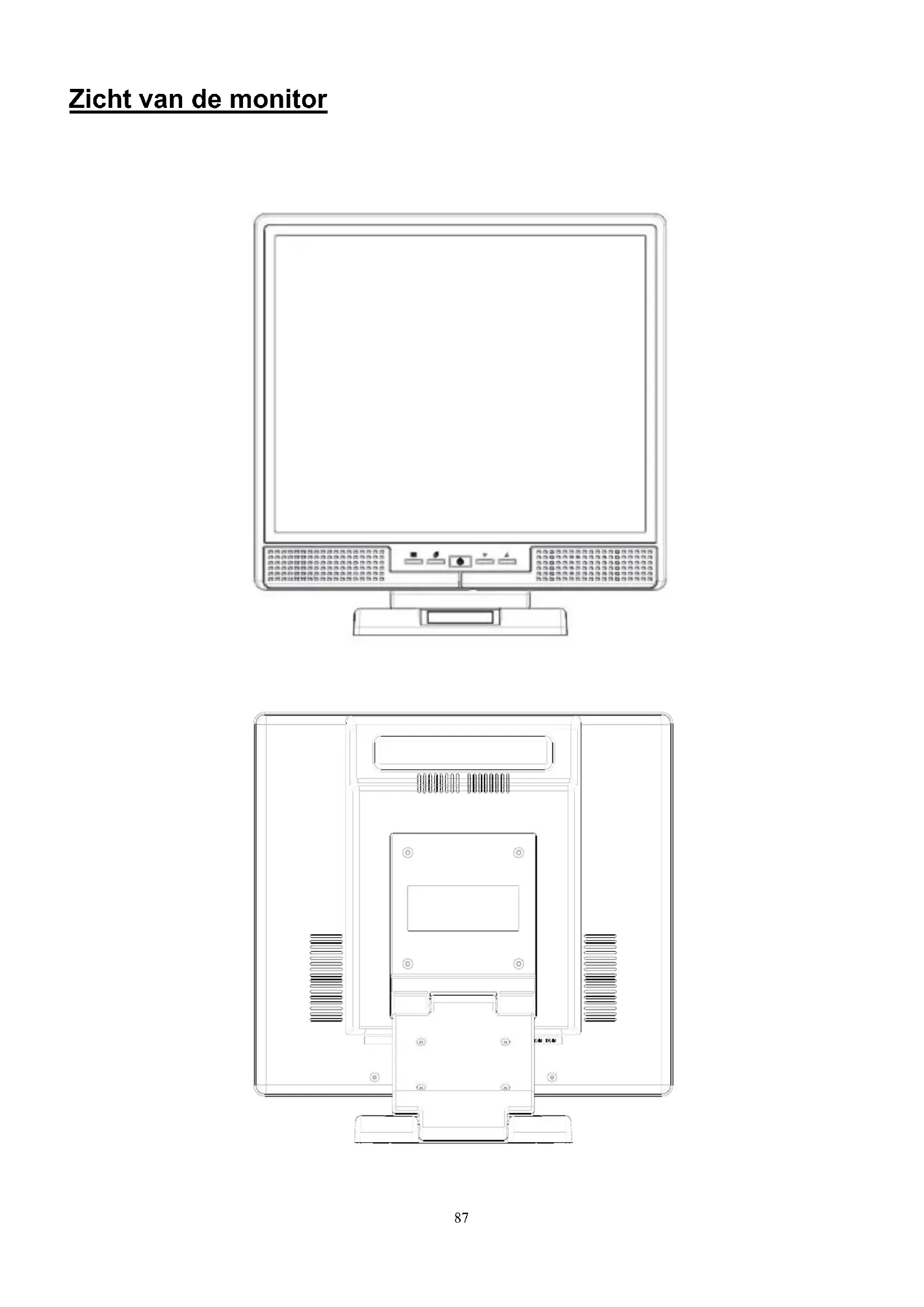 3. Probeer de monitor niet te openen. U zou door een elektrische shock gewond kunnen raken. Voor dienst,