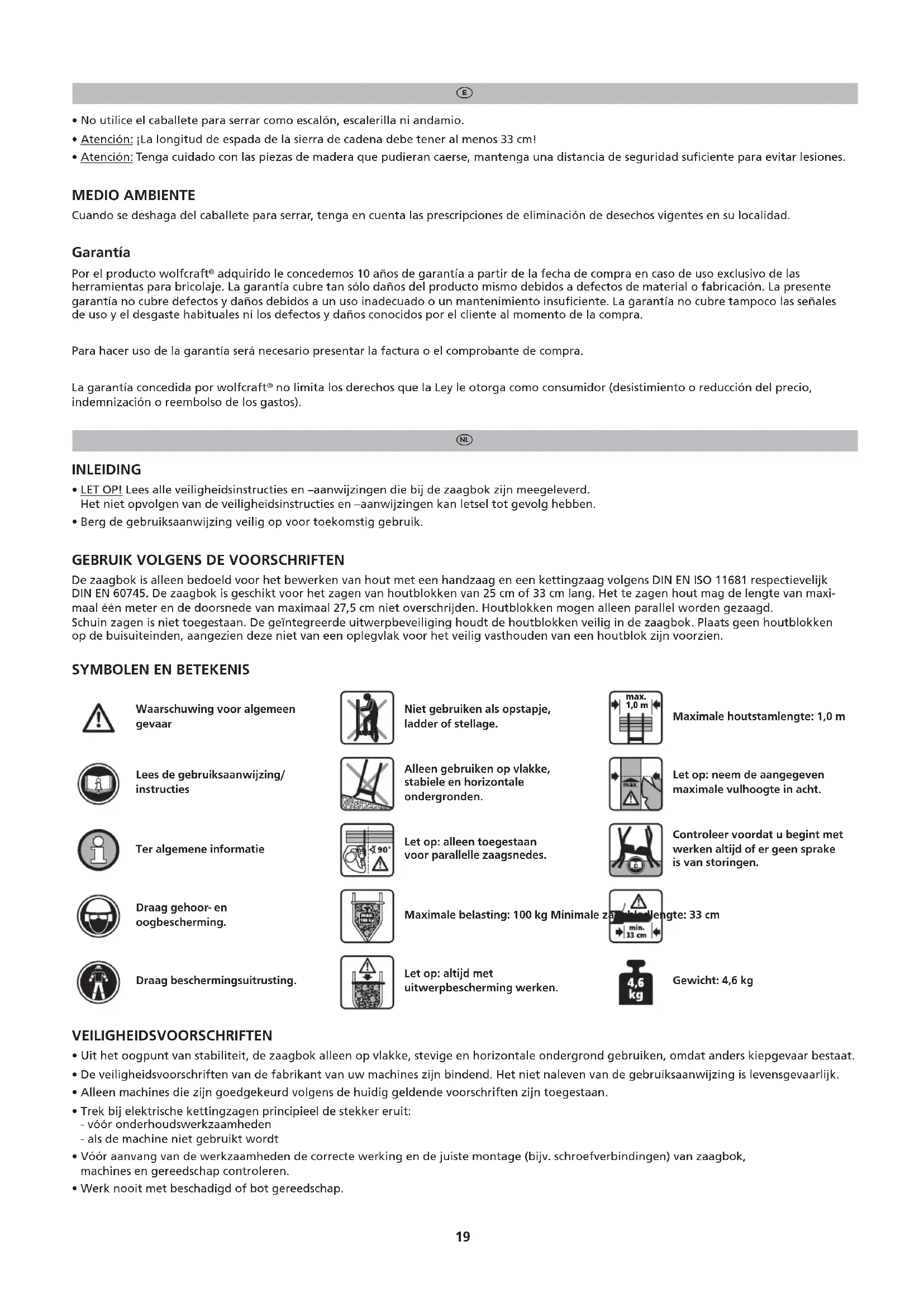 - LET OP! Lees alle veiligheidsinstructies en -aanwijzingen die bij de zaagbok zich meegeleverd. Het Niet opvolgen van de veiligheidsinstructies en -aanwijzingen kan letsel tot geolg hebben.