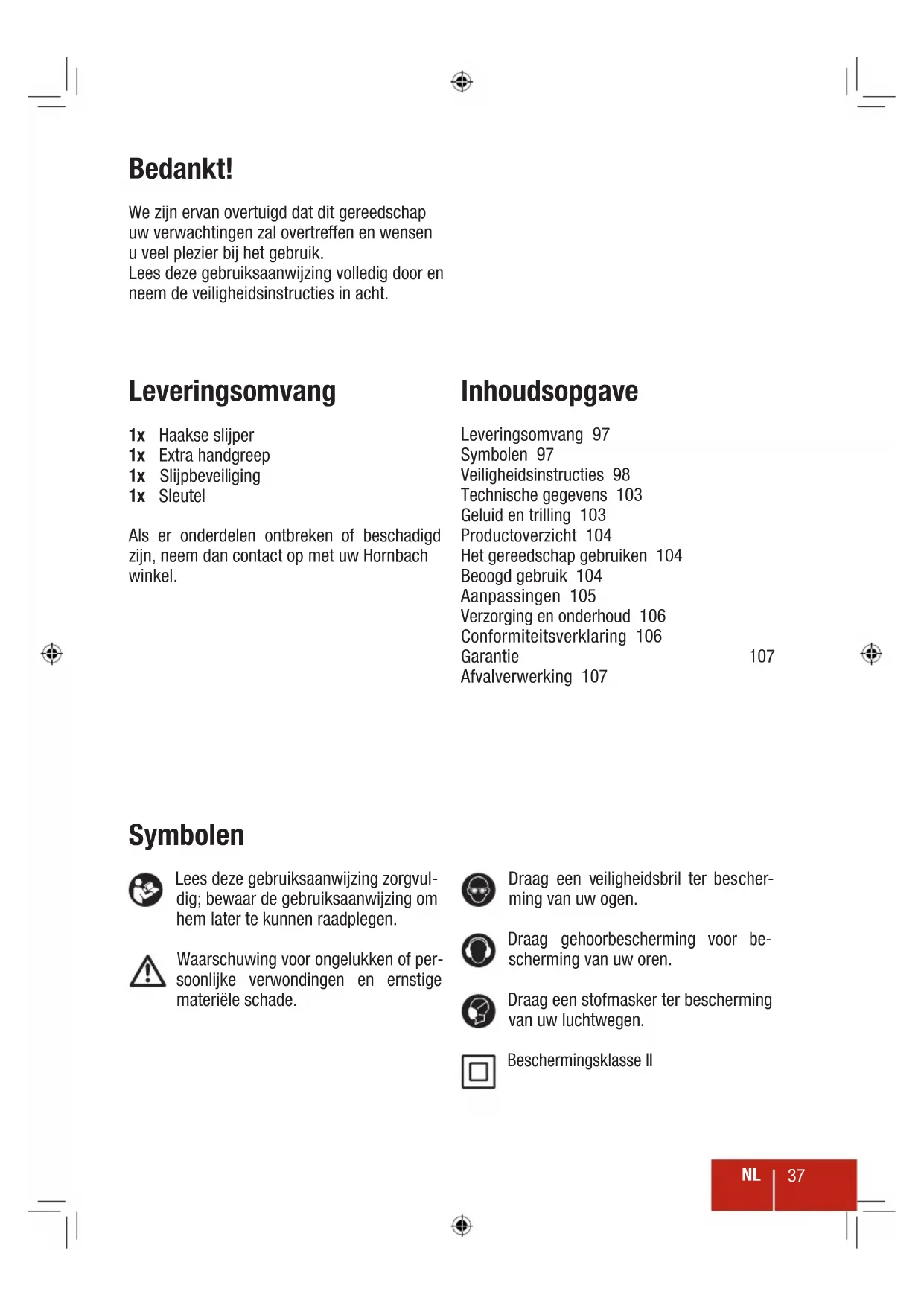 Als er onderdelen ontbreken of beschadigd zijn, neem dan contact op met uw Hornbach winkel.