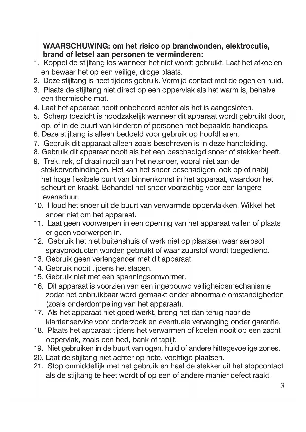 - Deze stijltang is heetijdens gebruik. Vermijd contact met de ogen en huid.