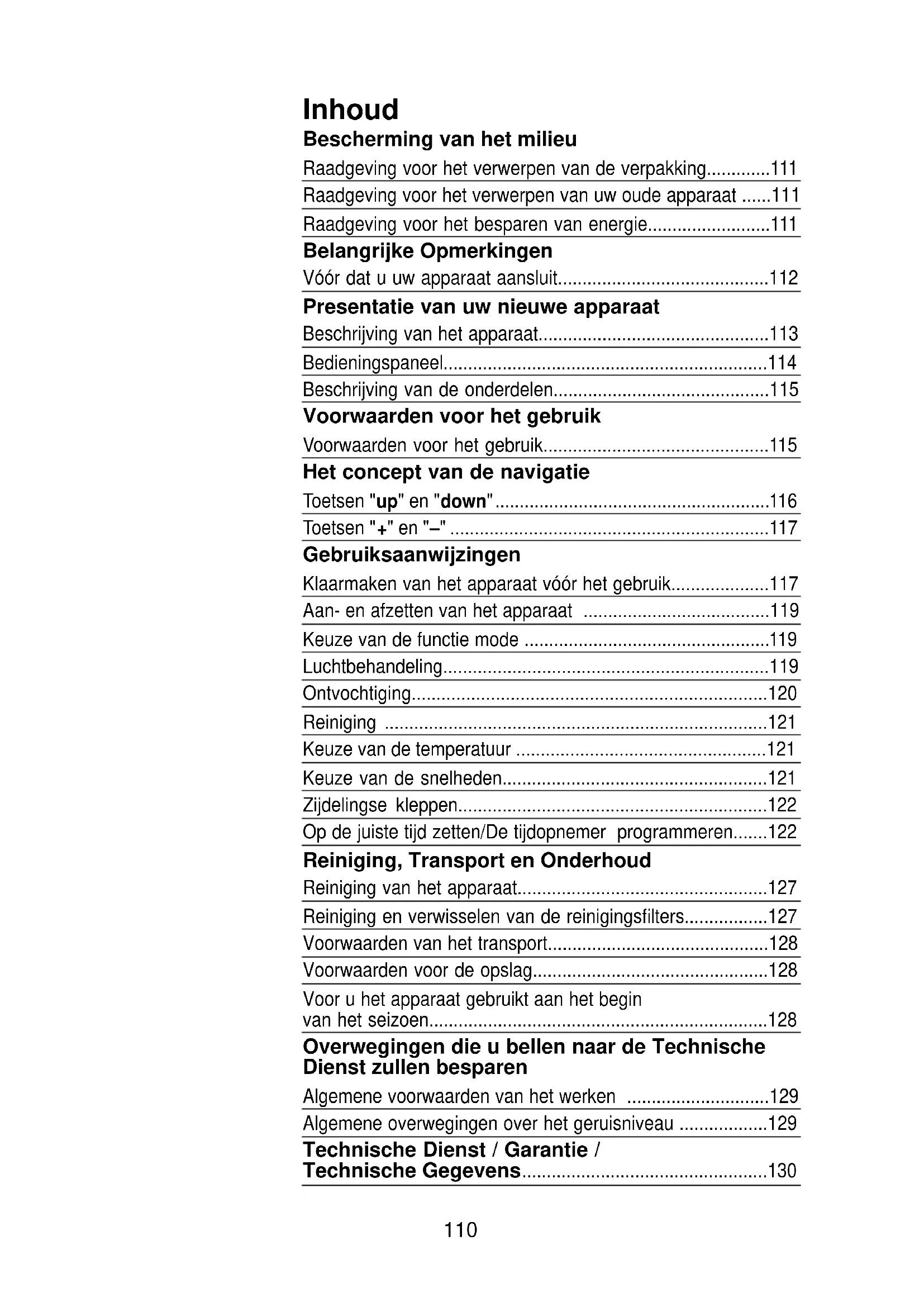 - Presentatie van uw nieuwe apparaat Beschrijving van het apparaat p. 113