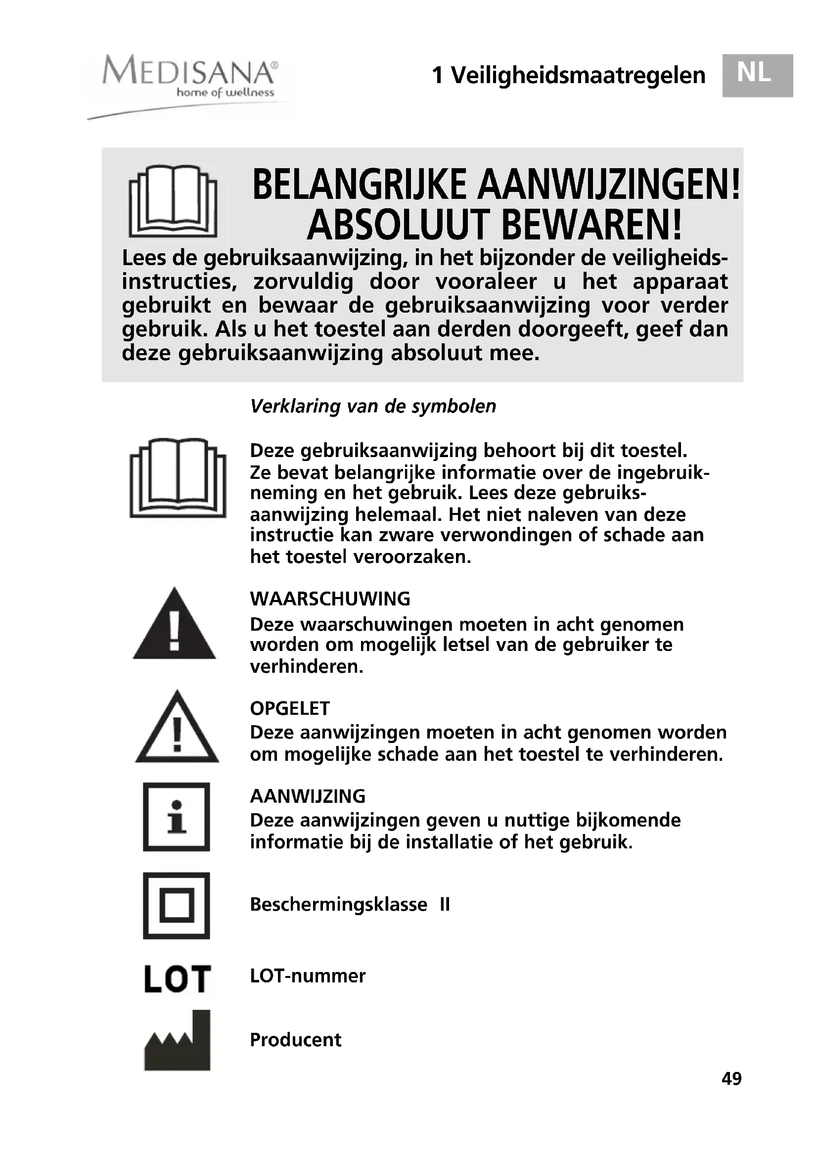 1 Safety Information 1.Veiligheidsmaatregelen 49
