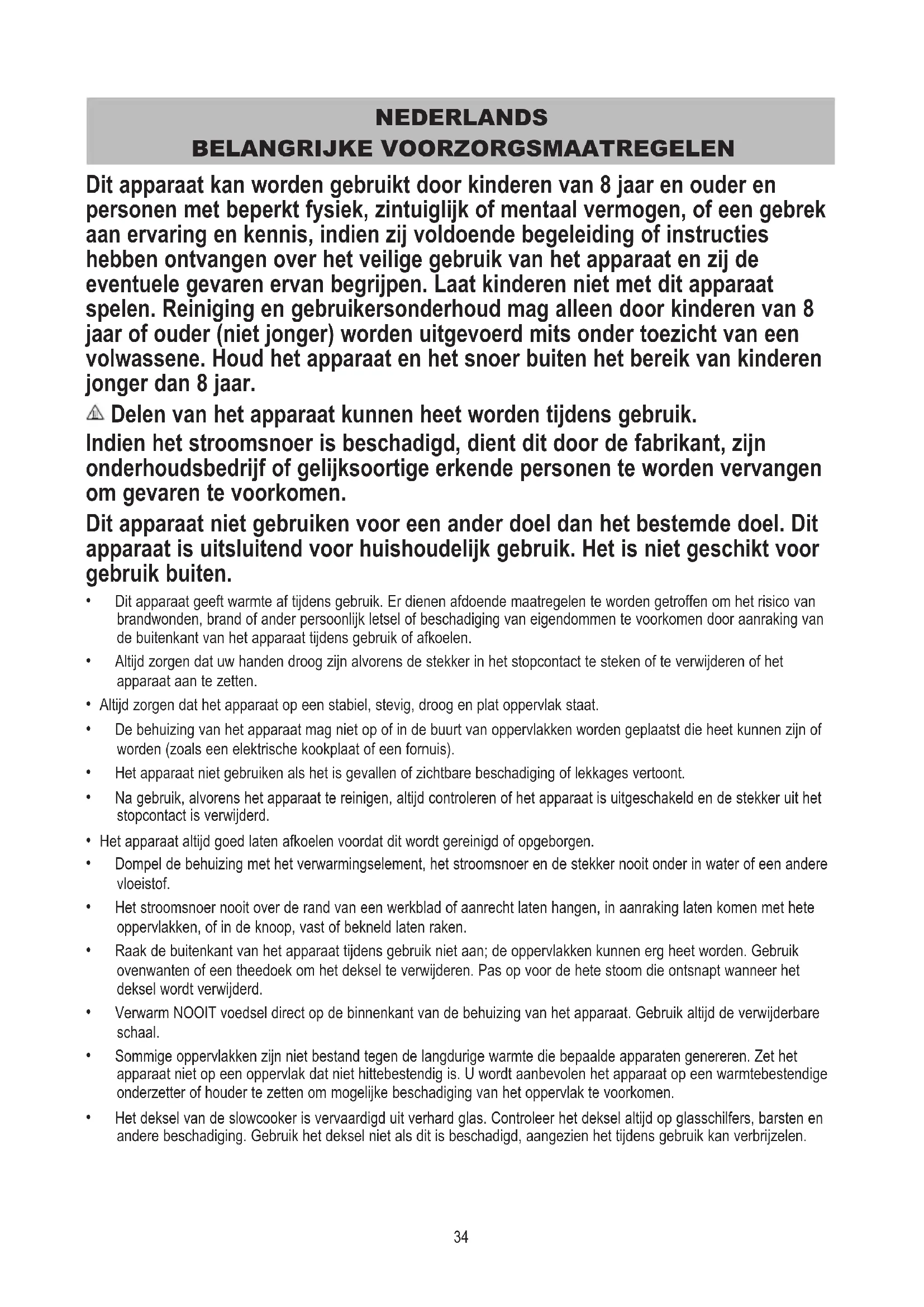 - Het deksel van de slowcooker is vervaardigd uit verhard glas. Controleer het deksel altijd op glasschilfers, barsten en andere beschadiging. Gebruik het deksel niet als dit is beschadigd, aangezien het tijdens gebruik kan verbrijzelen.35 ONDERDELEN