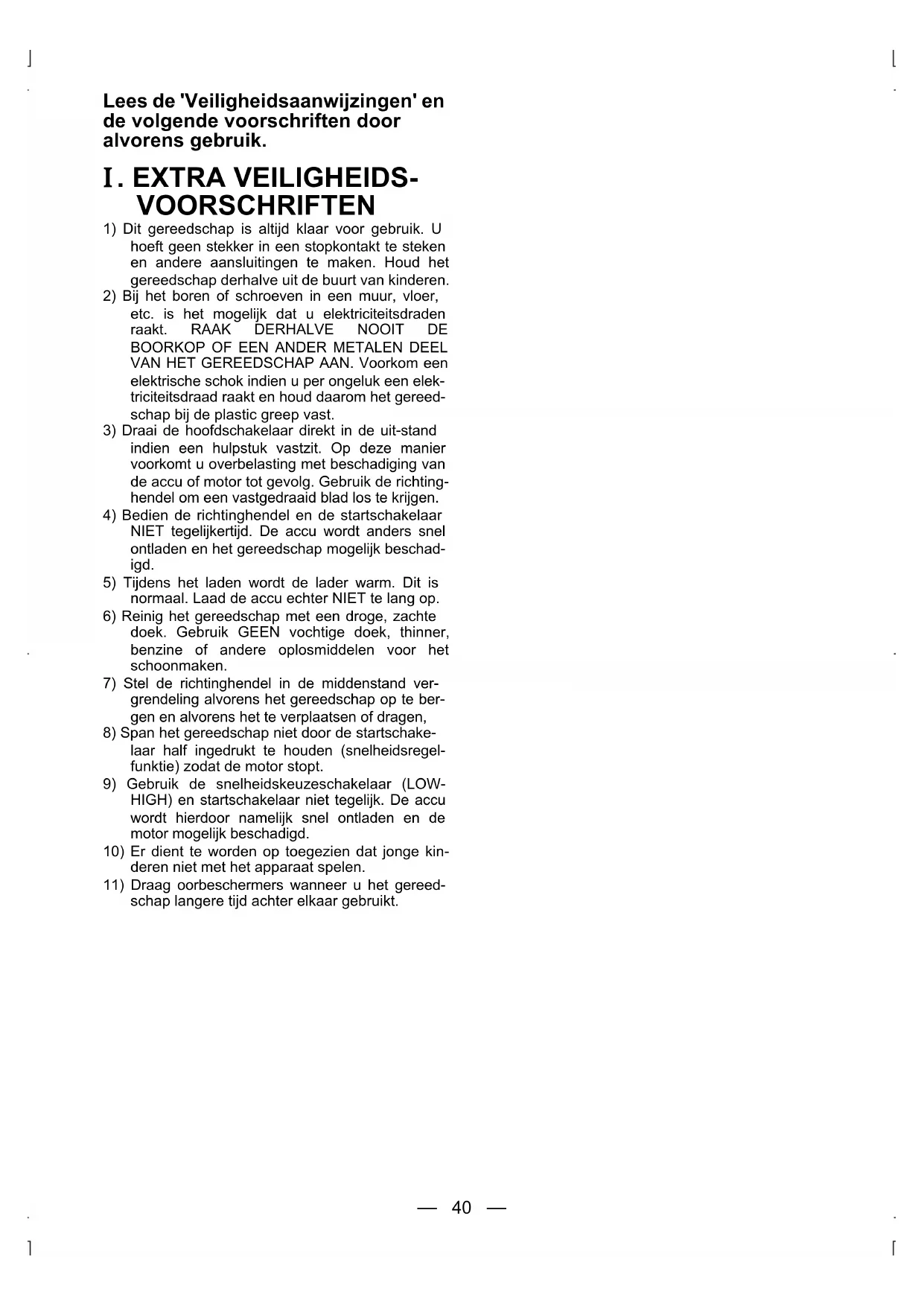 I. EXTRA VEILIGHEIDS-VOORSCHRIFTEN