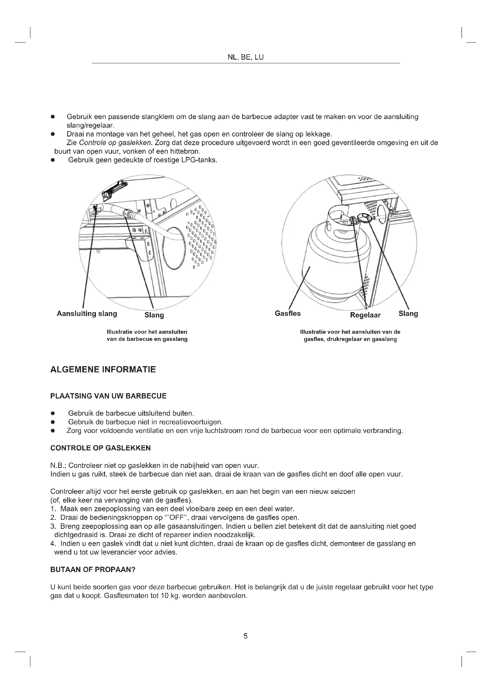 LET OP: GEBRUIK DE BARBECUE NIET VOORDAT U ZEKER BENT DAT ALLEN AANSLUITINGEN GASDICTZ IJN!
