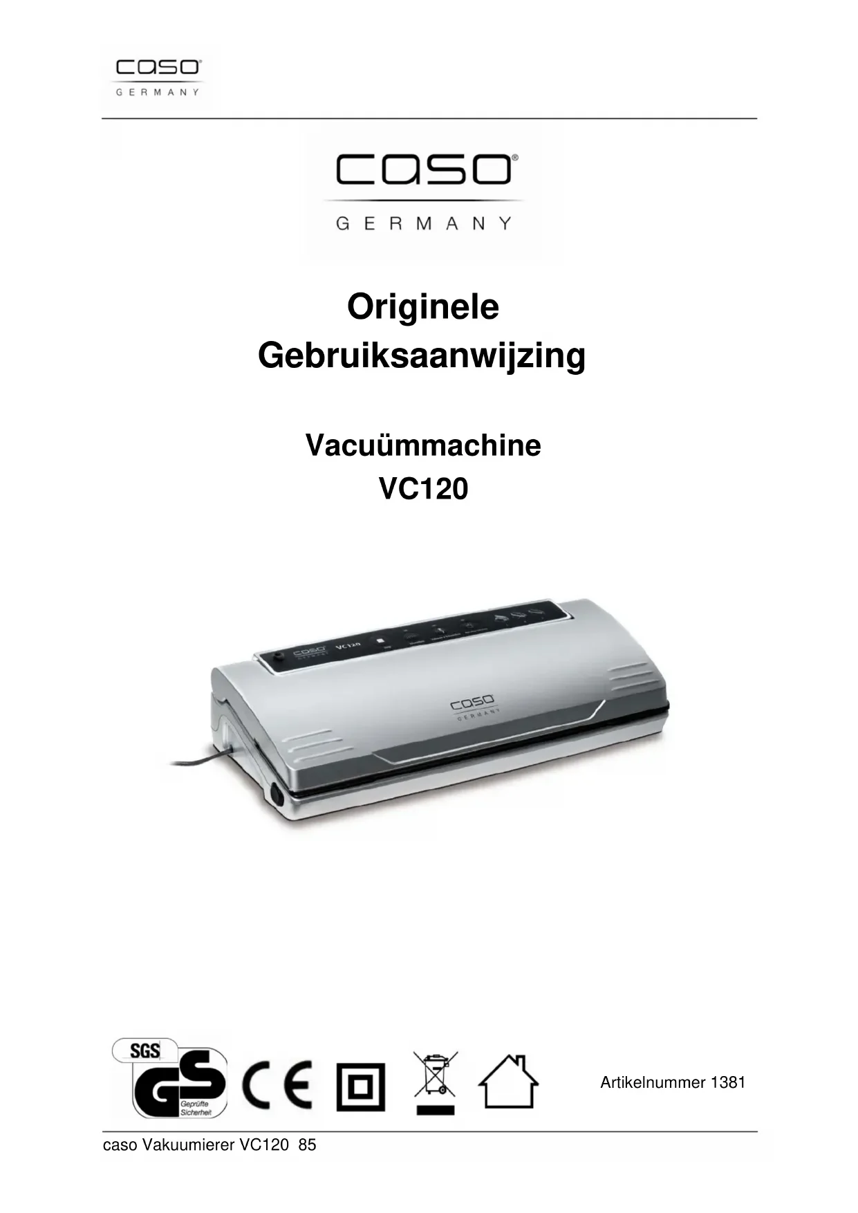 Artikelnummer 1381caso Vakuumierer VC120 86 33 Gebruiksaanwijzing