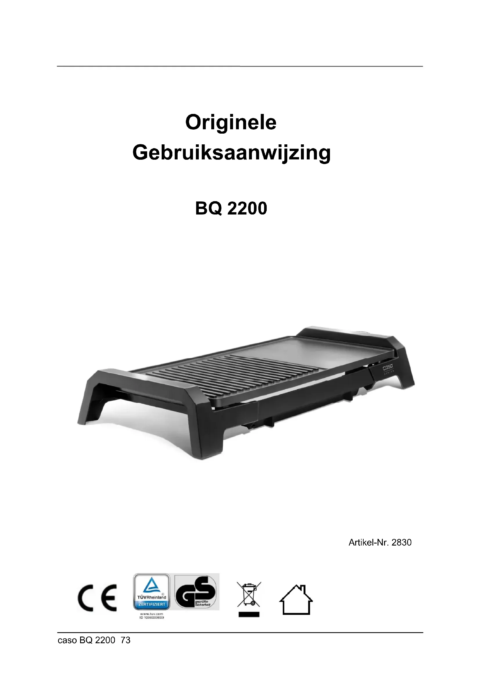 BQ2200 - Grillplaat CASO - Gratis gebruiksaanwijzing en handleiding