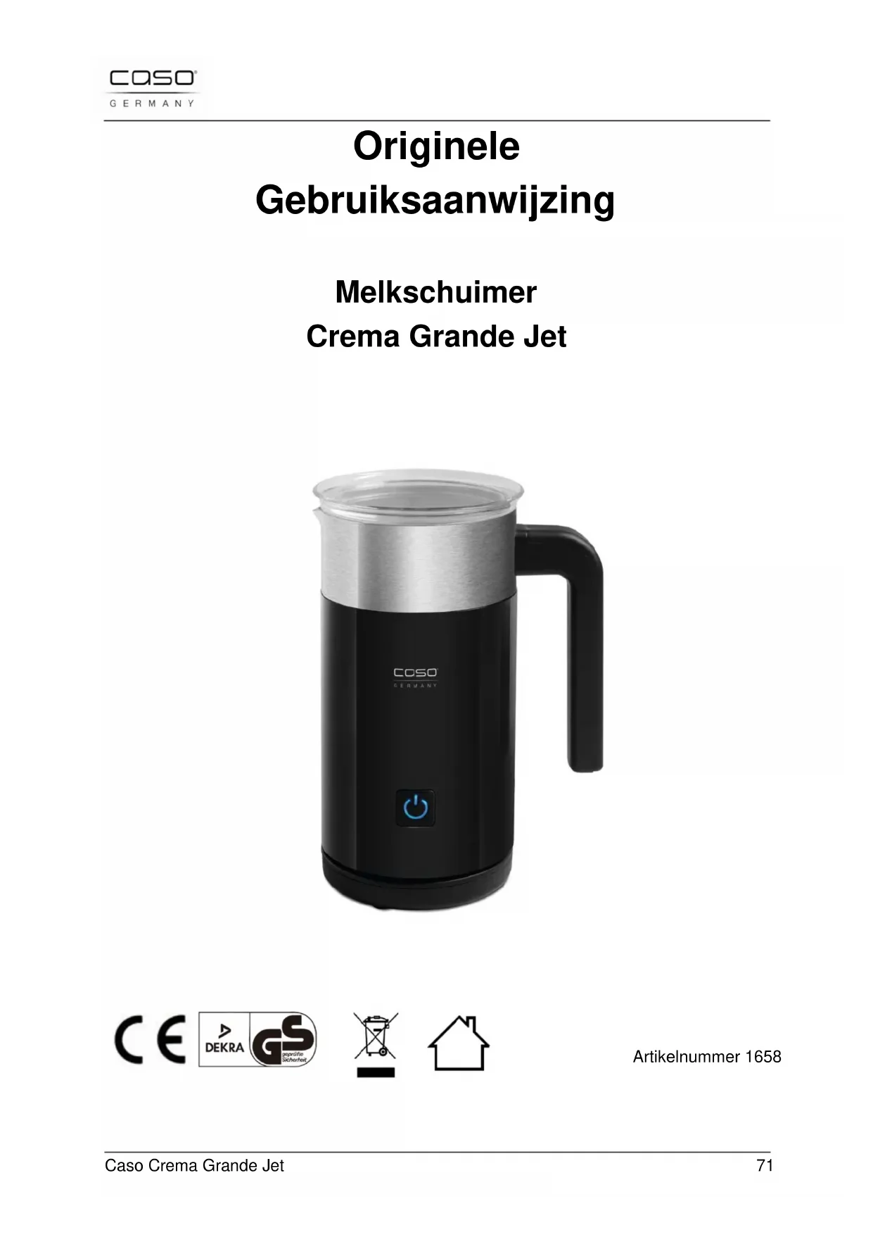 Crema Grande Jet 1658 - Melkschuimer CASO - Gratis gebruiksaanwijzing en handleiding