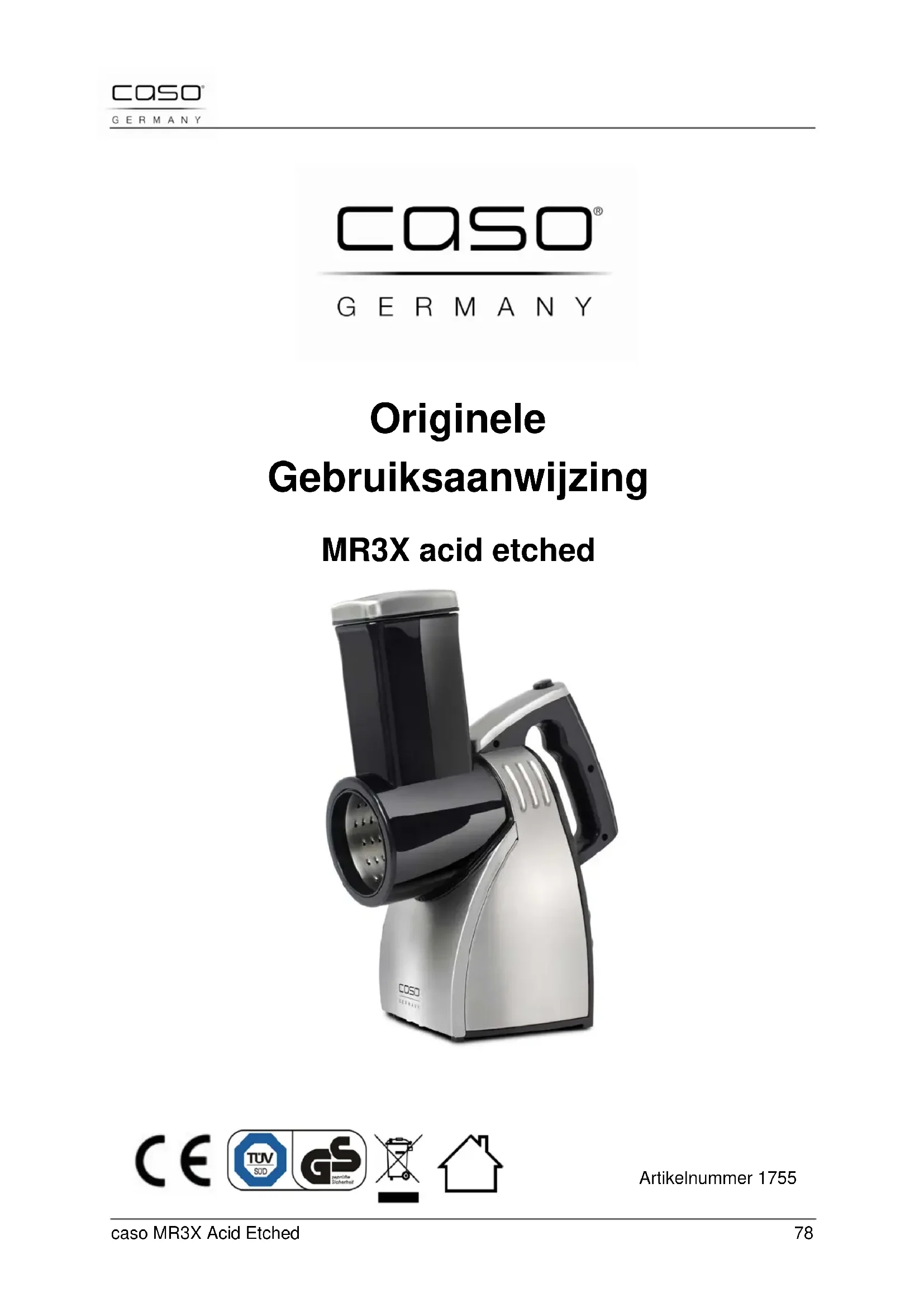 MR3X Acid Etched - Keukenmachine CASO - Gratis gebruiksaanwijzing en handleiding