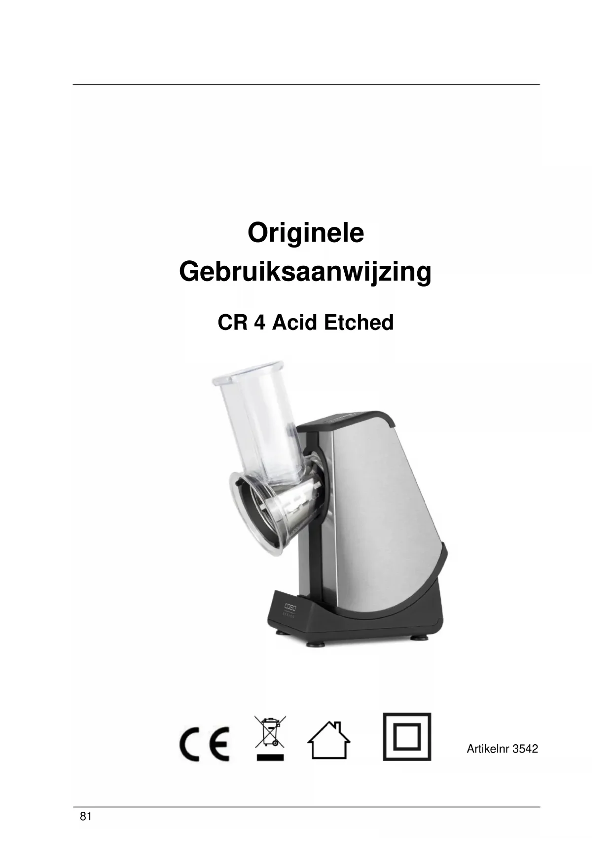CR4 Acid Etched - Keukenmachine CASO - Gratis gebruiksaanwijzing en handleiding