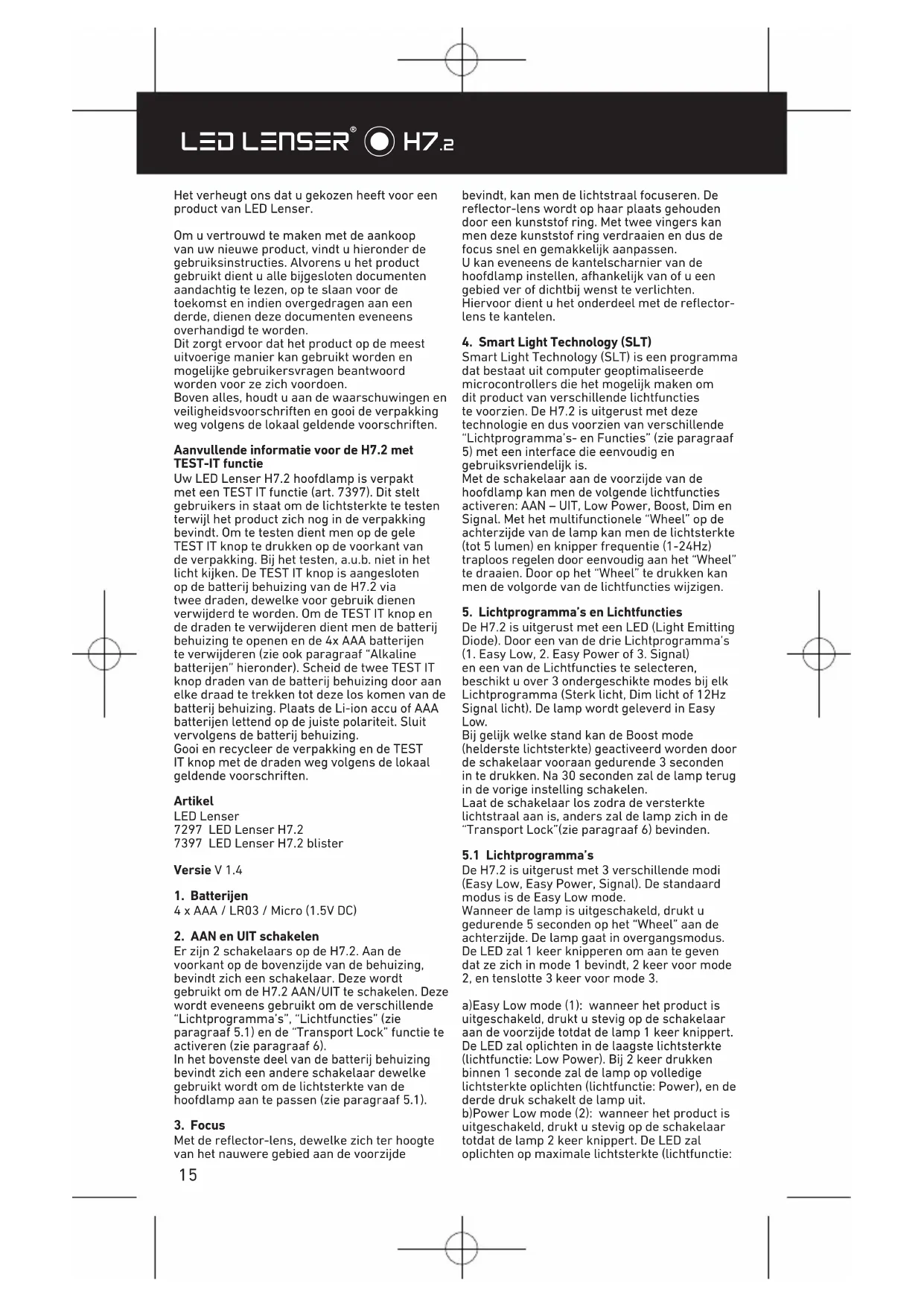 GEBRUIKSAANWIJZING H7.2 Ledlenser