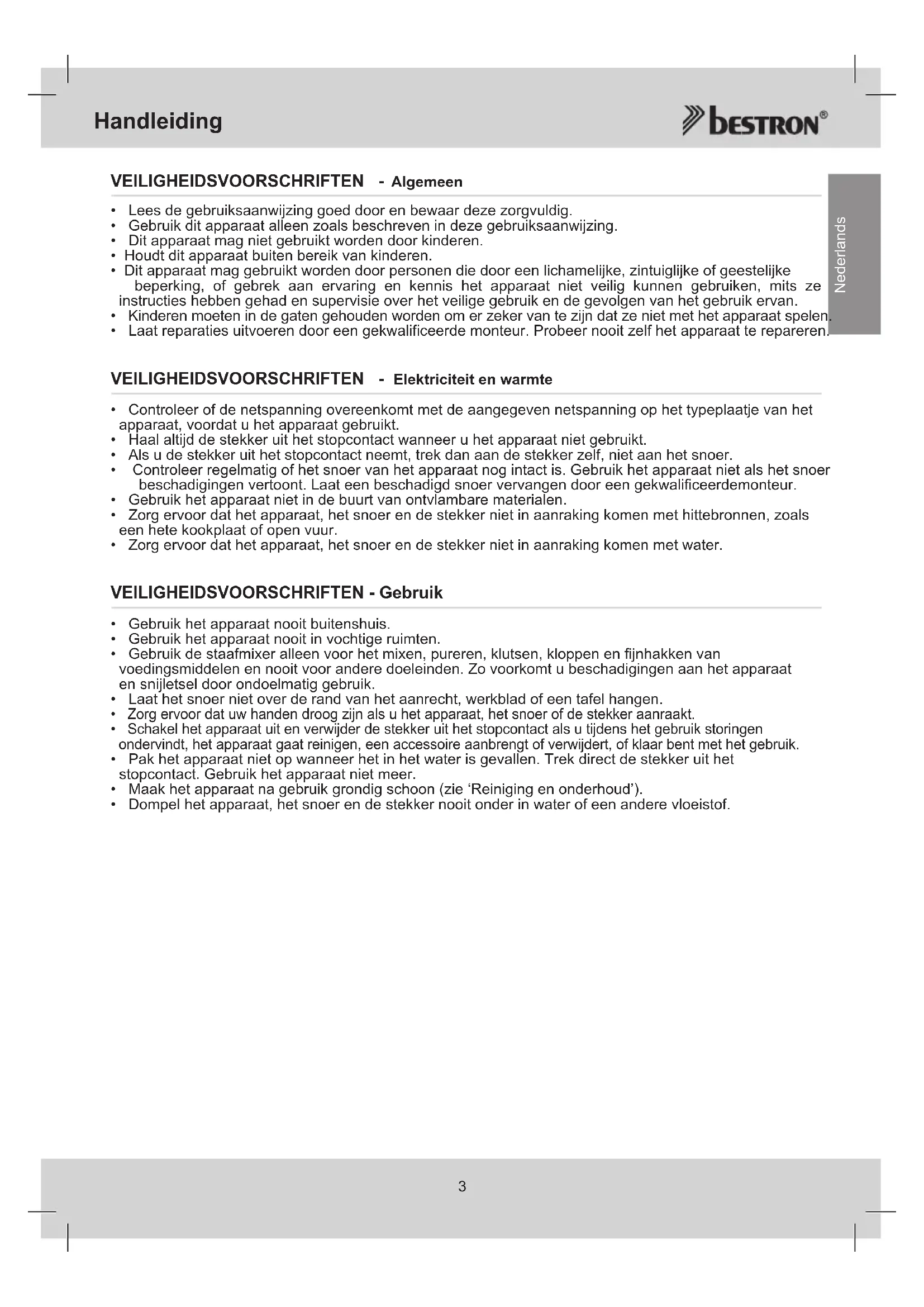 Nederlands VEILIGHEIDSVOORSCHRIFTEN - Algemeen